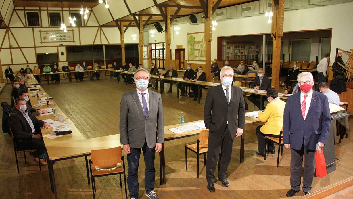 Willebadessens neuer Bürgermeister Norbert Hofnagel (Mitte) gratuliert Hubert Gockeln (l.) und Paul Arens (r.) zur Wahl als Stellvertretende Bürgermeister. | © Dieter Scholz