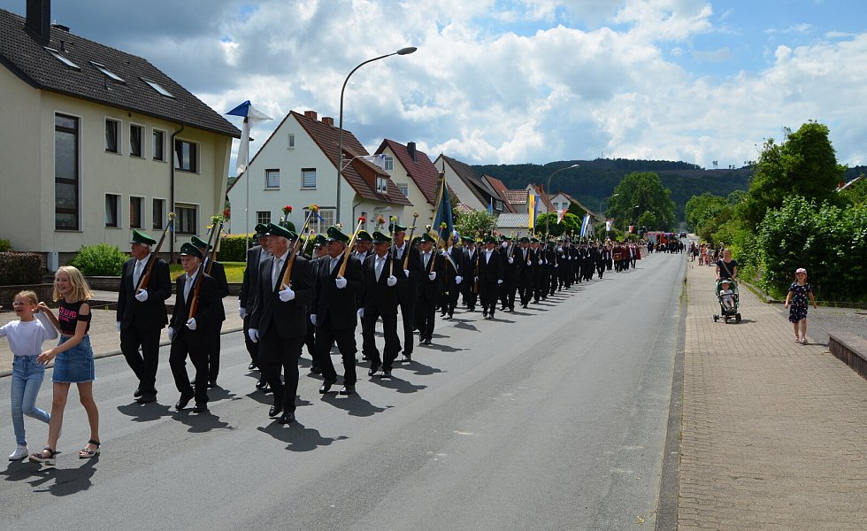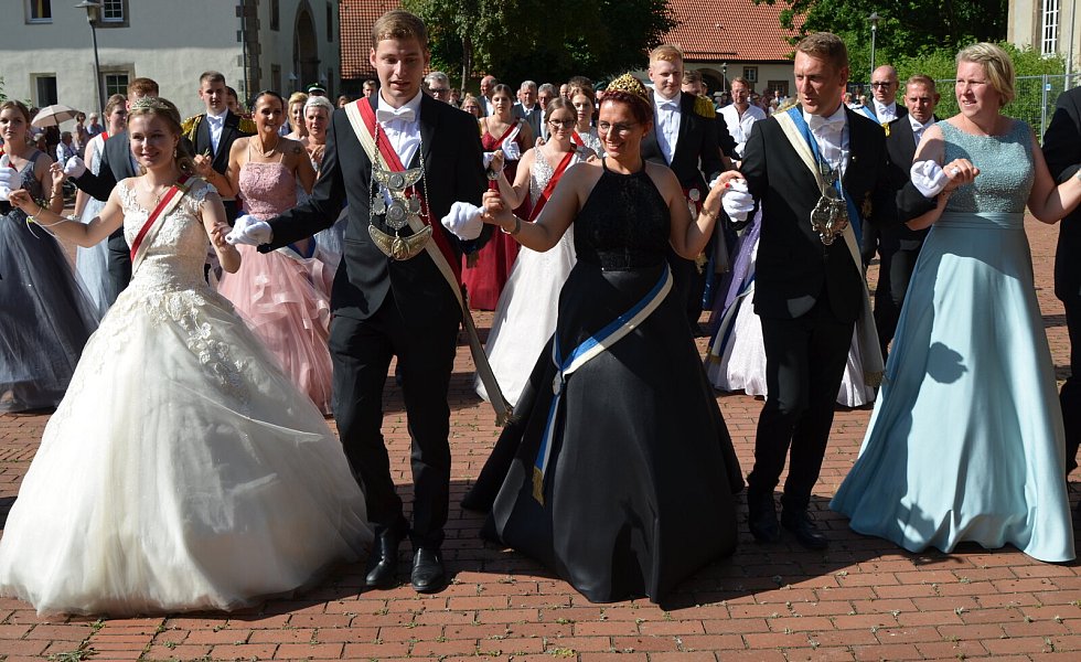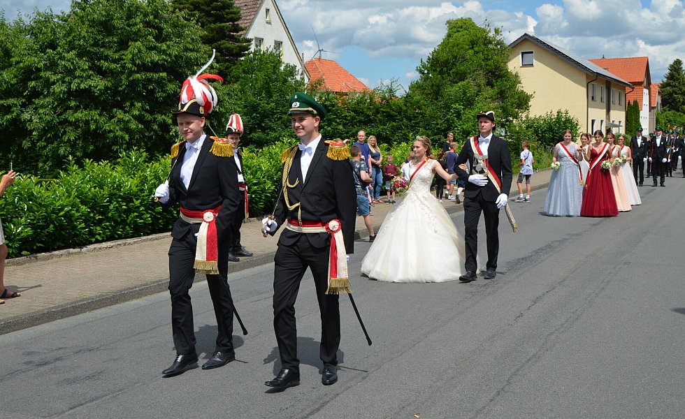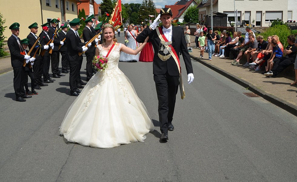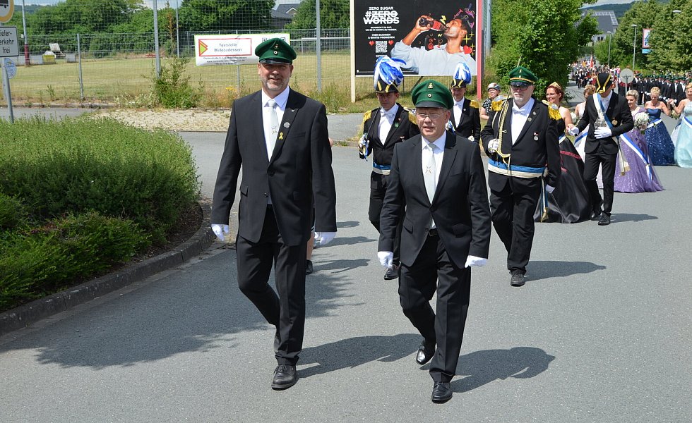 Willebadessen hat traditionell zwei Könige und zwei Hofstaate („Jung und Alt“). Jeder König wird vom Festzug abgeholt, wodurch sich von Jahr zu Jahr lange Wegstrecken innerhalb des Ortes ergeben. Diesmal ging es bis „hoch“ an die Hurst.
