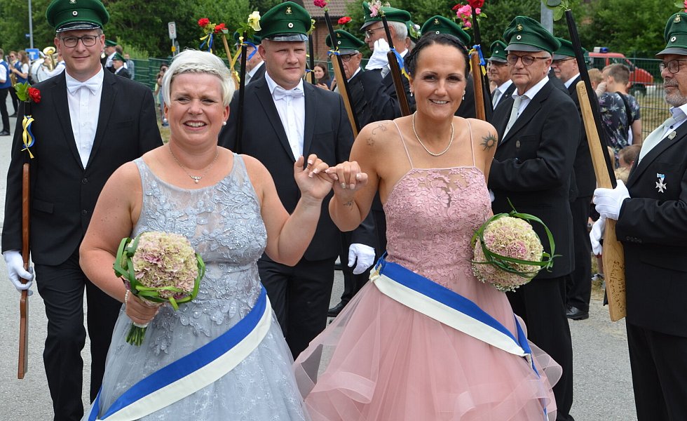 Willebadessen. Nach zweijähriger Corona-Pause konnte in Willebadessen endlich wieder ein Schützenfest nach Maß gefeiert werden. Den Hofdamen der beiden Schützenbruderschaften St. Johannes und St. Sebastian war die Freude anzumerken. Sie präsentierten bei sommerlichem Wetter unter Beifall der zahlreichen Besucher/i am Straßenrand ihre festlichen Kleider.