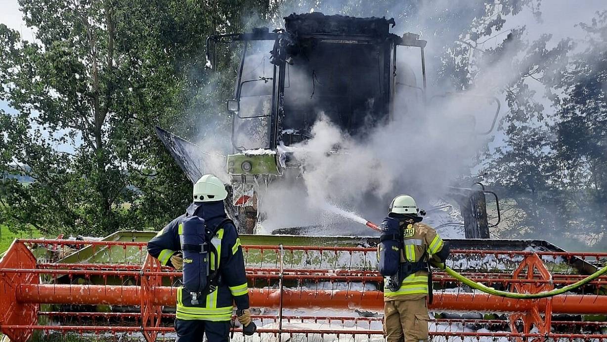 Feuer nach der Ernte: Mähdrescher nur noch Schrott