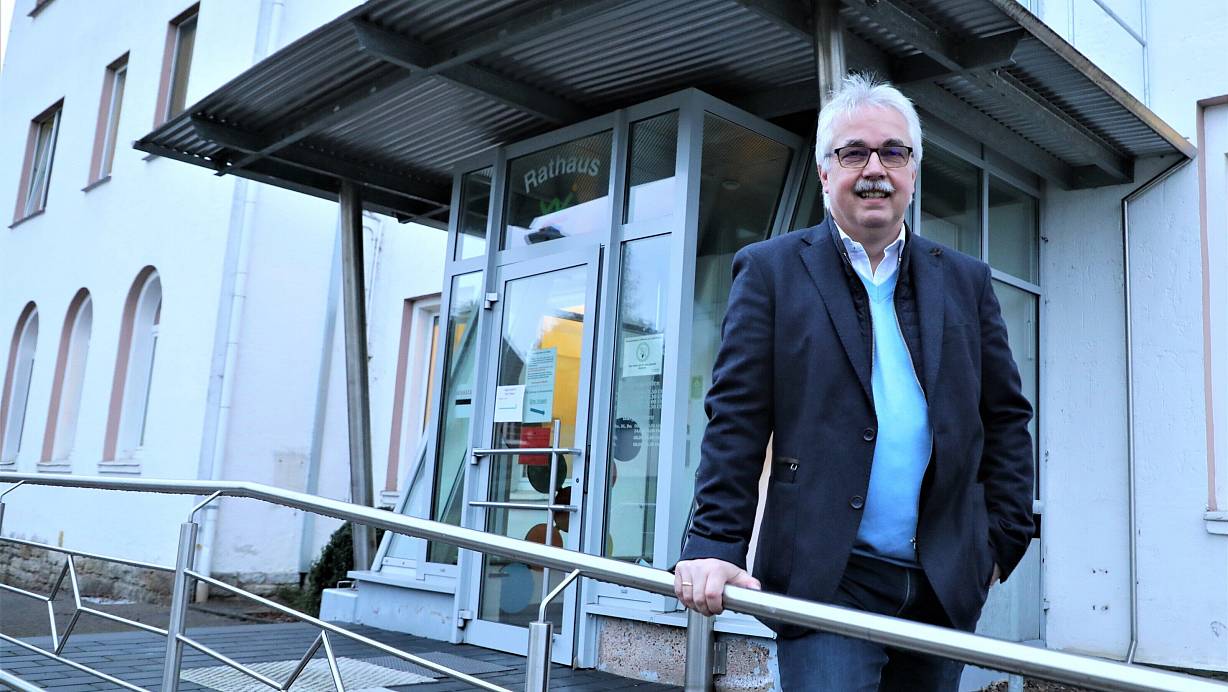 Norbert Hofnagel, Bürgermeister in Willebadessen, vor dem Eingang zum Rathaus in Peckelsheim. Monatelang hatten gegen ihn schwere Vorwürfe im Raum gestanden. Archivfoto: Simone Flörke | © Simone Flörke