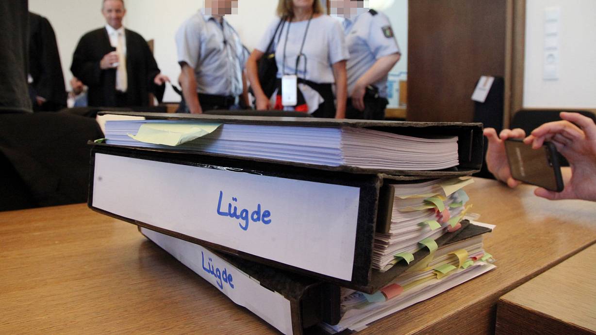 Außerhalb des Saals spielen sich ungewöhnliche Szenen ab. Zwei Zuschauer müssen das Gerichtsgebäude verlassen. Es steht der Verdacht im Raum, dass sie der Reichsbürgerszene angehören. Die Polizei hat die Ermittlungen aufgenommen.