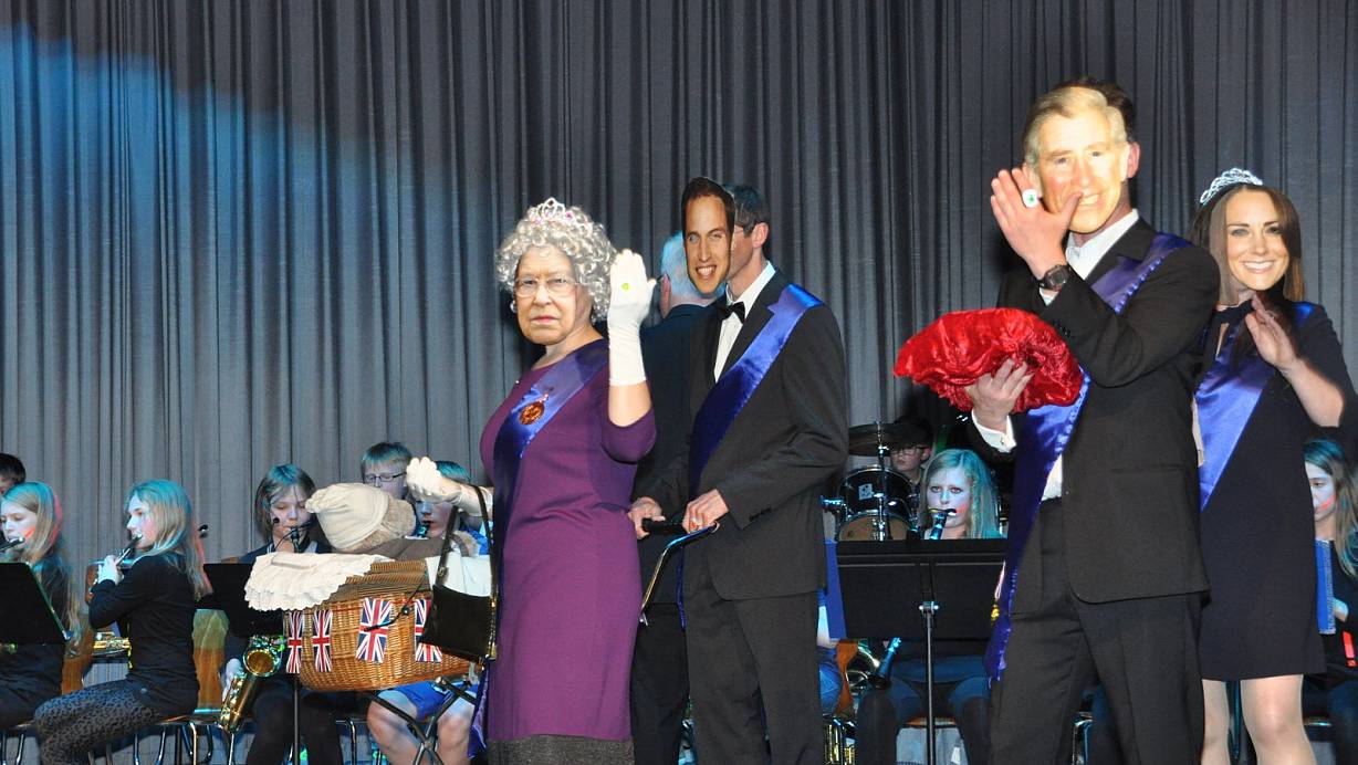 Oerlinghausen. Vor 35 Jahren war sie schon einmal ein der Stadt. Damals wussten nur wenige davon. Jetzt hatte sich die Queen bei ihrem Deutschlandbesuch offensichtlich wieder für einen Abstecher in die Bergstadt entschieden. Freundlich lächelnd und diesmal bewusst vor großem Publikum schritt Elisabeth II. huldvoll winkend über die Bühnenbretter des Schulzentrums. Ihren Gatten hatte sie nicht dabei, dafür aber Prinz Charles, William, Kate und die Urenkel. Oder etwa nicht? Beim Bunten Abend des Niklas-Luhmann-Gymnasiums ist einfach alles möglich.