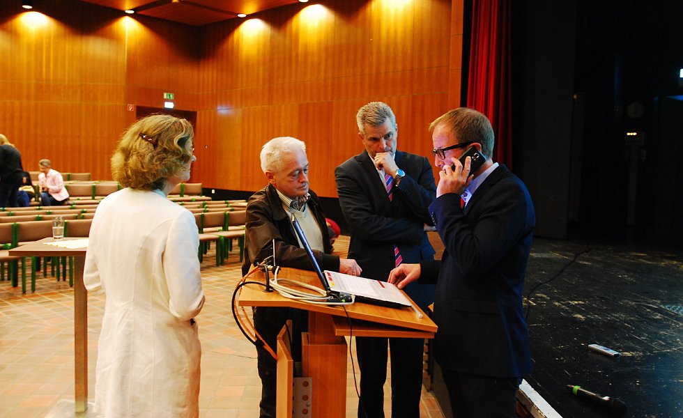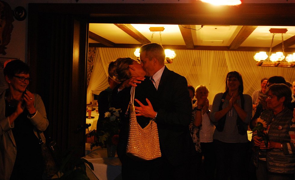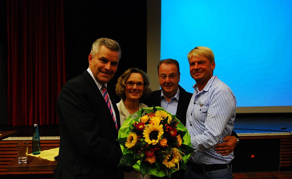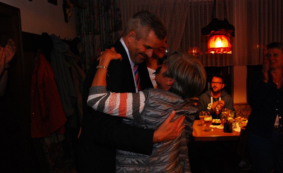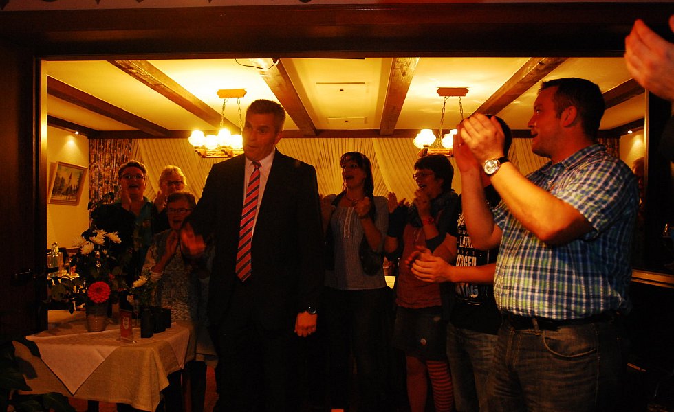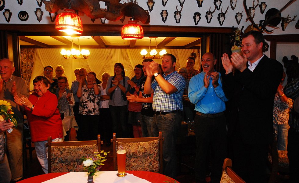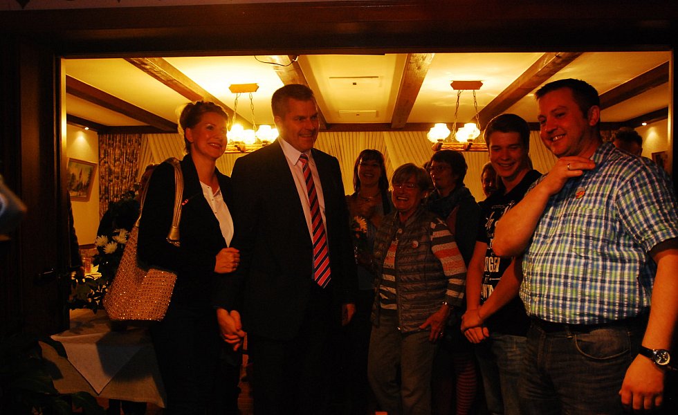 „Es ist die größte Ehre meiner politischen Laufbahn“, sagte Becker mit einem dicken Kloß im Hals – dann kam glücklicherweise der begeisterte Applaus der etwa 400 Bürgerinnen und Bürger, die zur Wahlparty in die Aula des Schulzentrums gekommen waren.
