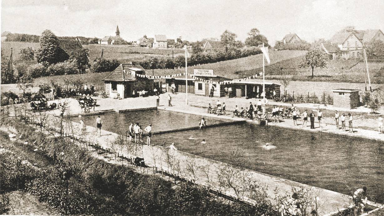 Die größte Touristenattraktion war allerdings noch im Rohbau: Heinrich Unterkötter aus Wellentrup hatte in Privatinitiative damit begonnen eine "Badeanstalt" zu bauen. Die außerordentliche touristische Bedeutung des Bauprojekts am Haferbach war jedem in Helpup klar. Der Bau musste deshalb auch vom Verkehrsverein mit allen Mitteln unterstützt werden. Und Bauherr Unterkötter versprach jedem, der mindestens vier Tage unentgeltlich am Bau mitgearbeitet hatte, eine Jahresfreikarte für das Bad. Am 22. Mai 1932 weihte die Dorfgemeinschaft unter großer Beteiligung der Bevölkerung das Freibad "Vogelsang" ein.