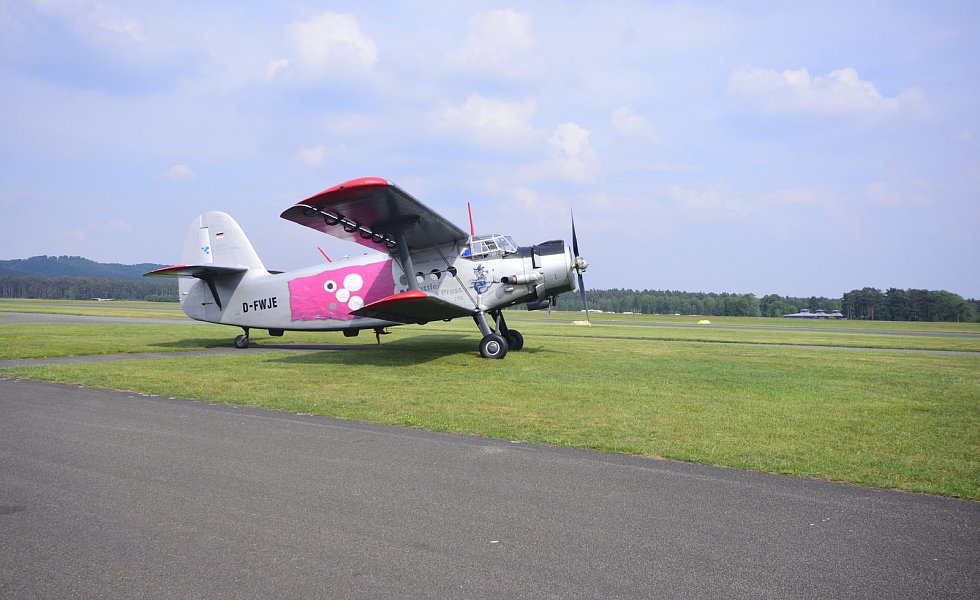 Auf dem Flugplatzfest in Oerlinghausen ist sie Dauergast, die Antonov-An 52. Gegen die fliegende Grande Dame – Baujahr 1969 – sehen die (Kunstflug-) JAKs und Pitts richtig jung aus, obwohl sie schon locker auf die 30 zugehen oder sogar älter sind. Sie alle werden am Boden und in der Luft präsentiert. Flugshows von Modellen und Originalen gehören zum Programm, Rundflüge, auch mit der Antonov, ebenso. Einmal in einem Segelflieger sitzen? Kein Problem.