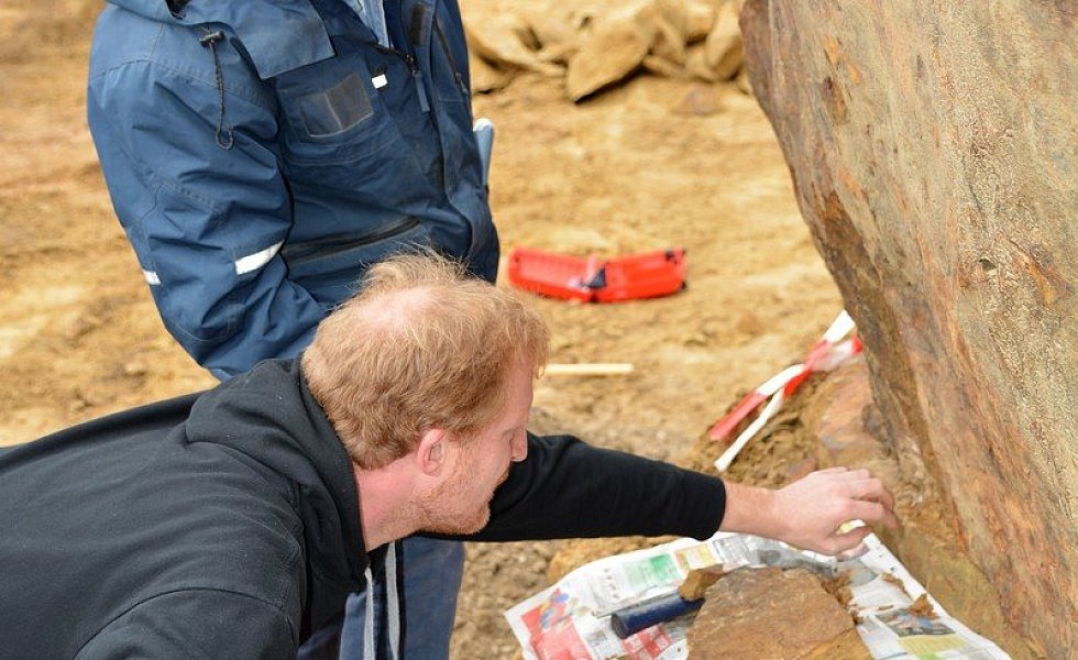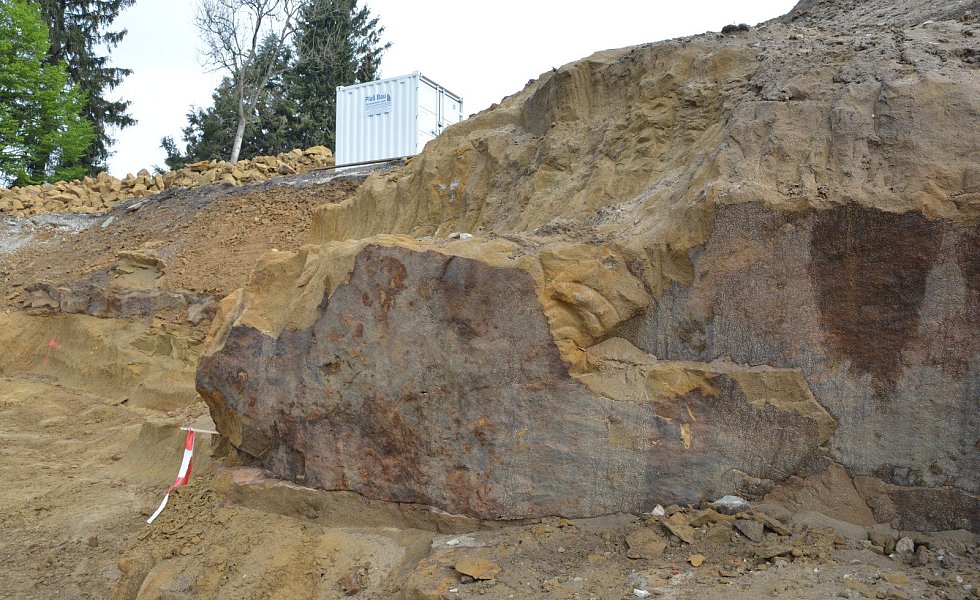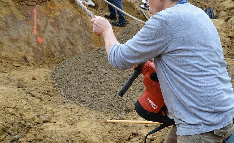 „Osningsandstein ist der klassische Bausandstein seit fast 1.000 Jahren", erläutert Mark Keiter. In der Region werde er aber seit Jahrzehnten nicht mehr abgebaut. Importsteine seien billiger, nennt der Geologe einen der Gründe. Der Teutoburger Wald sei zudem Naturschutzgebiet. „Durch die Bauarbeiten haben wir die seltene Gelegenheit, in den geologischen Untergrund zu kommen." Die Fundstelle liegt direkt unter der ehemaligen Jugendherberge. Die bislang gefundenen Donnerkeile befinden sich in einem etwa 1,5 mal 3 Meter großen Steinbrocken. „Ihn in Gänze zu bergern, das wäre unmöglich", bestätigt Keiter. Er begleitet die Arbeiten an der Fundstelle auch für den Naturwissenschaftlichen Verein Bielefeld.
