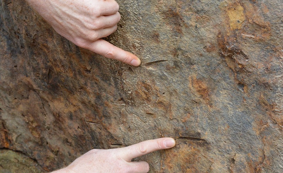 Oerlinghausen. Erst bei genauem Hinschauen sind die fossilen Überreste in den riesigen Osning-Sandsteinen zu erkennen. „Für Laien", das kann Mark Keiter durchaus nachvollziehen, „sieht das nicht spektakulär aus." Für Geologen aber sind die Donnerkeile, die im Zuge der Abrissarbeiten der einstigen Jugendherberge auf dem Tönsberg entdeckt worden ist, von großer wissenschaftlicher Bedeutung.