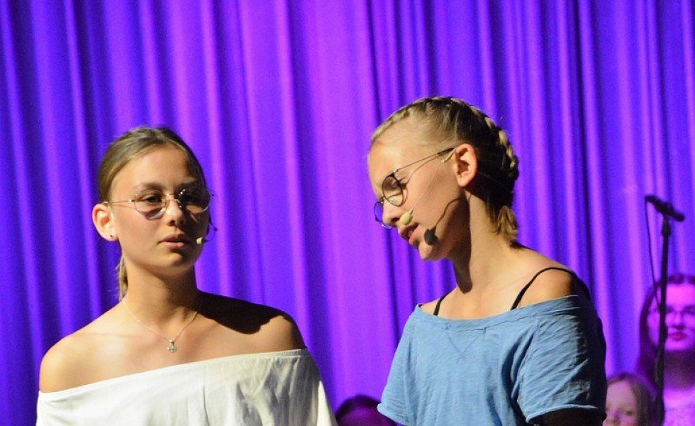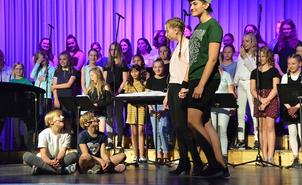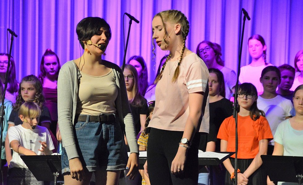 Wie das Leben beeinflusst werden kann, wenn jemand ständig an sich selbst und seinen Fähigkeiten zweifelt, das wurde in der Folge ebenso deutlich, wie die emotionalen Momente einer Trennung und schließlich das verliebte Miteinander auf Wolke sieben. Vor allem der Nachwuchs (die Fünftklässlerinnen Victoria Chapman und Henrike Lüttgenau) sorgte für einen der besonders humorvollen Konzertmomente.