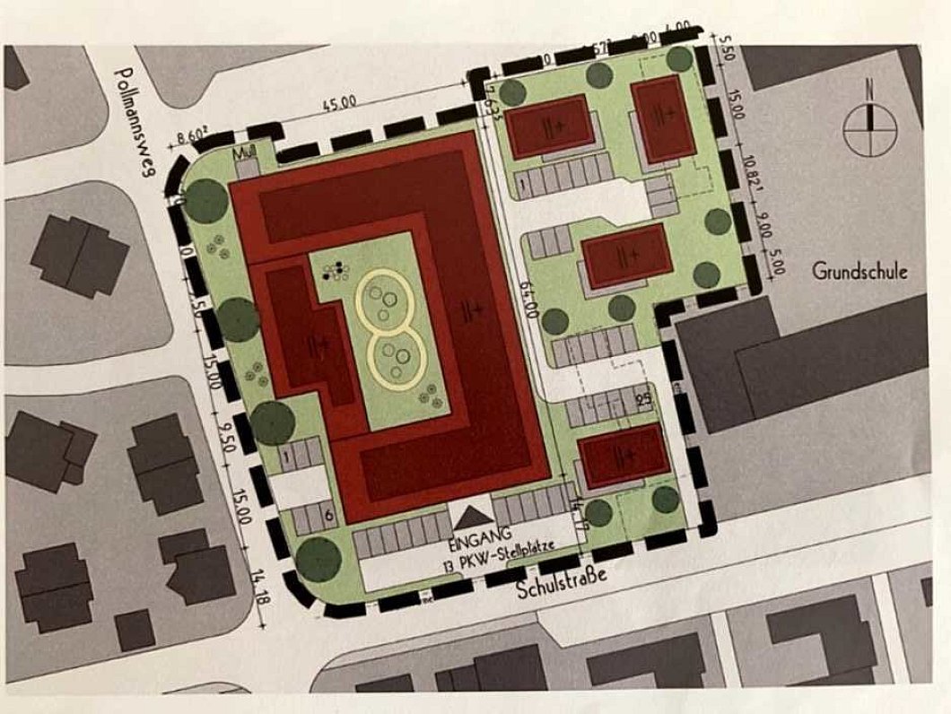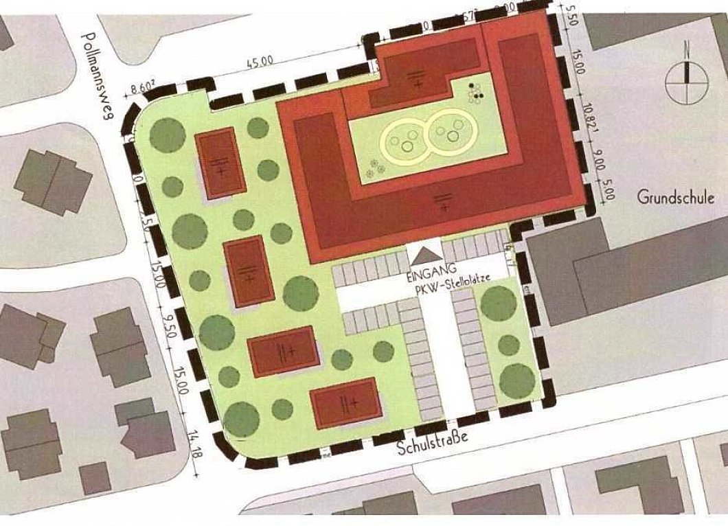 Die Anwohner sind nicht grundsätzlich gegen den Bau, sie schlagen deshalb vor, die Planung sozusagen zu spiegeln, mit der lockeren Bebauung am Pollmansweg und dem Gebäudekomplex an der Grundschule. "Da fühlt sich niemand gestört", sagt Manfred Schmitz. Der Investor will sich diese Planung ansehen.