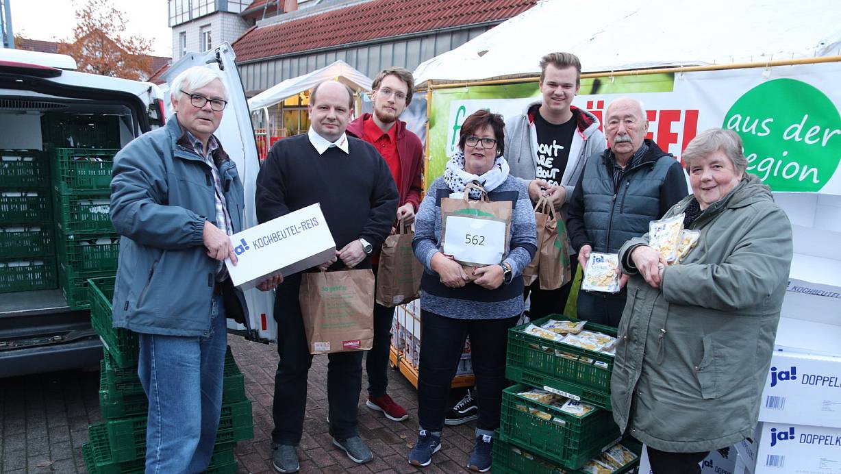 Birgitt Psiorz von der „Tafel“-Ausgabestelle in Asemissen war über die Unterstützung hocherfreut. „Ich muss mich ganz herzlich bei allen Spendern bedanken und den Beschäftigten des Bürgerladens ein großes Lob aussprechen“, sagte sie. „Mit diesem Vorrat kommen wir gut über den Winter.“ Die meisten Lebensmittel, die der „Tafel“ gespendet werden, seien nur kurz haltbar. Dagegen stelle der Inhalt der Tüten einen langfristigen Vorrat dar. „Auf diese Weise haben unsere Kunden die Möglichkeit, sich auch mal etwas Besonderes zu kaufen“, sagte Psiorz. Derzeit werden pro Woche mehr als 230 Oerlinghauser mit ihren Kindern von der „Tafel“ unterstützt. Ein Berechtigungsschein gibt den Familien die Möglichkeit, gegen ein geringes Entgelt Lebensmittel zu erwerben. Bei der gemeinnützigen Organisation sind insgesamt 62 Fahrer und Helfer in der Ausgabestelle im Einsatz. Im vergangenen Jahr konnte der „LiLi“-Laden 353 Tüten verkaufen und nahm damit ersten Platz in der Nahkauf-Region Nord ein. Dafür hat es diesmal nicht gereicht. „Die Kollegen in Tecklenburg haben 21 Tüten mehr geschafft“, sagte Otte. „Aber wir freuen uns auch über unsere Spitzenposition in Ostwestfalen-Lippe.“ In den Märkten in Helpup, Asemissen und Leopoldshöhe wurden insgesamt 246 Tüten gespendet. Bundesweit kamen somit durch die Aktion gespendete Lebensmittel im Gesamtwert von 2,53 Millionen Euro zusammen.