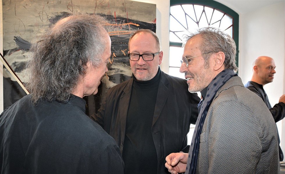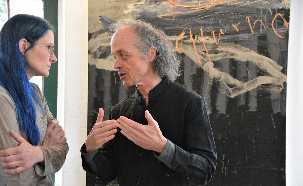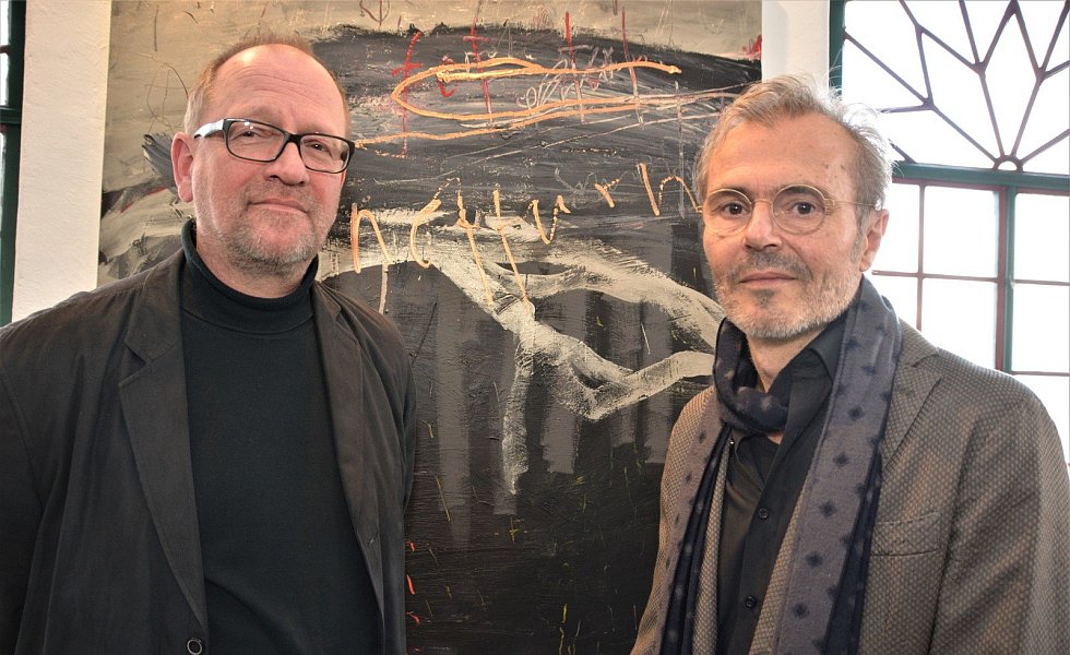 Jürgen Heinrich leitet seit dem Jahr 2007 das Haus Lydda in Bethel, eine Kunstakademie für Menschen mit Handicap. Sein Beruf führt Heinrich in die Grenzbereiche menschlichen Lebens und die Bereiche zwischen Kunst, Literatur und Philosophie. All das findet Ausdruck in seinen Arbeiten. "Abstrakt, aber sehr ausdrucksvoll", das ist der erste Eindruck von Sigrid Mai. Andreas Beaugrand liest passend zum Thema einen Text von Wolfgang Borchert: "Nachts schlafen die Ratten doch." Und er fügt am Ende noch diese Zeilen an: "Wenn Ihr nicht nein sagt, Mütter, kommt wieder ein neuer Krieg."