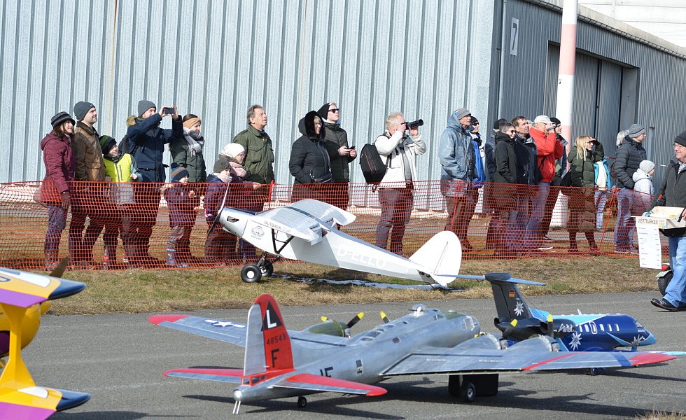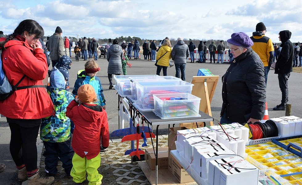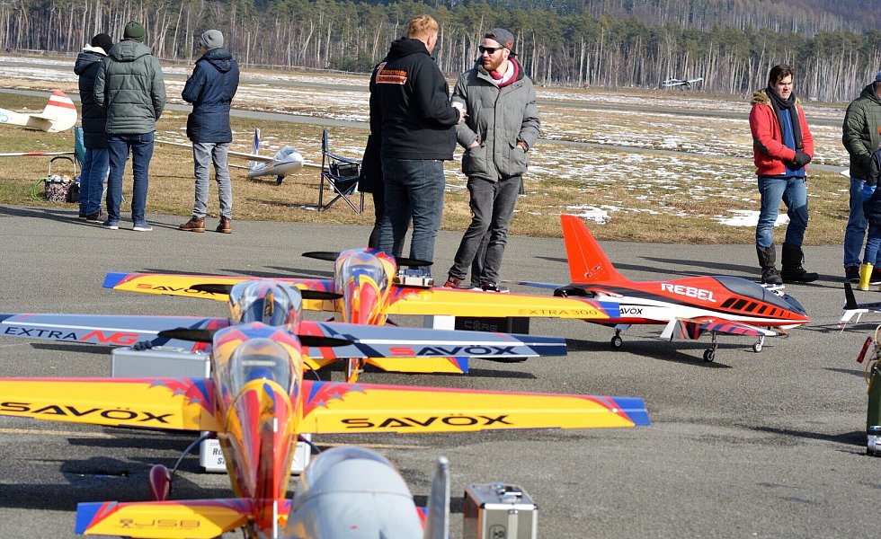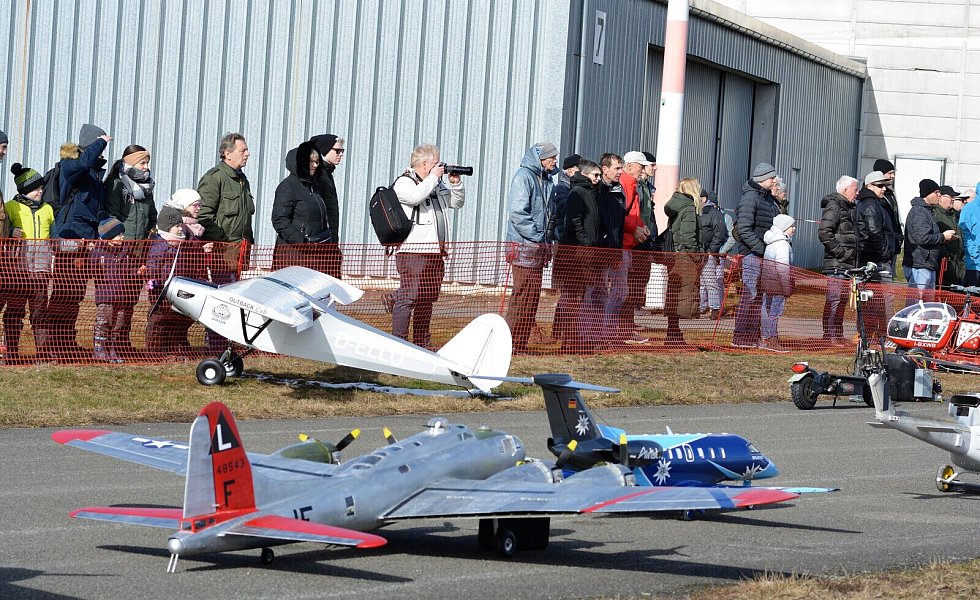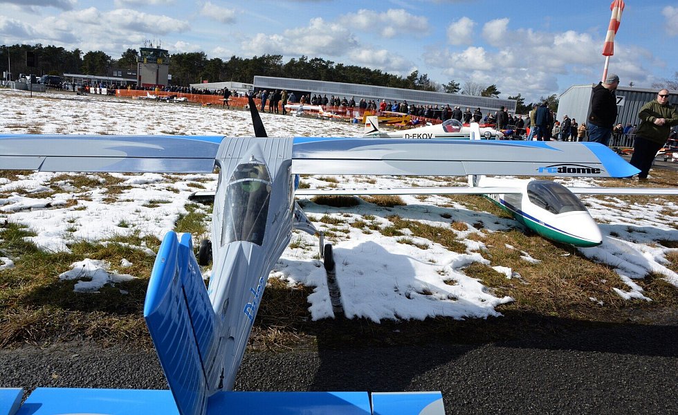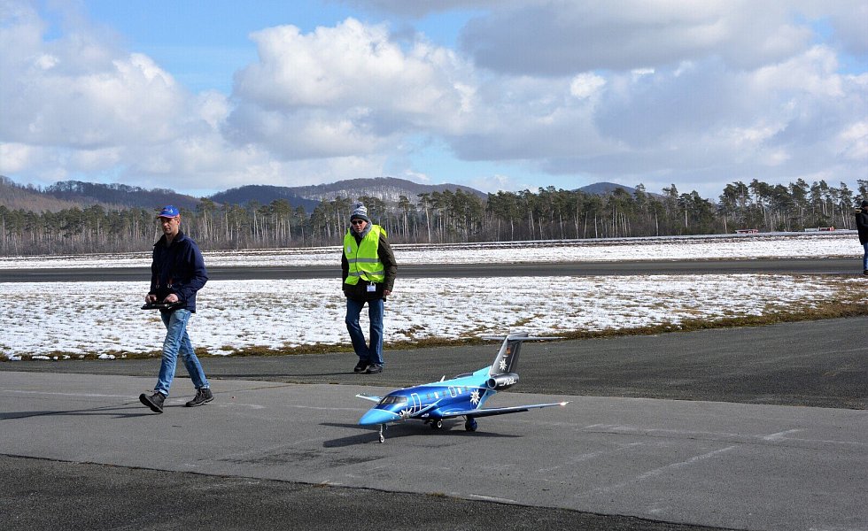 Der Nachbau eines Privatjets misst 2,10 Meter und hat eine Spannbreite von 2,14 Metern. „Daran habe ich sieben Monate gebaut“, erzählt Robert Sixt. Das Modell besteht komplett aus Holz. Die blaue Folie drüber erweckt den Eindruck, als sei der Jet lackiert worden. Sixt ist, ebenso wie Harald Booms, zum ersten Mal beim Frühjahrsfliegen, das zugleich den Saisonauftakt auf dem Segelflugplatz Oerlinghausen markiert, dabei.