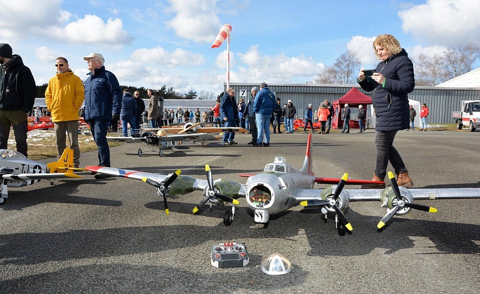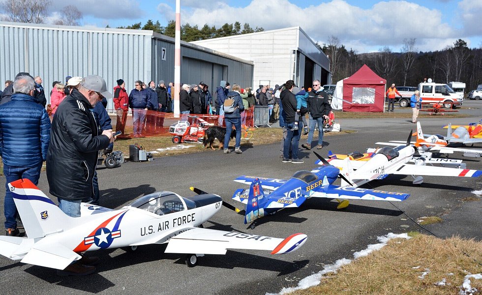 So aber können die Moderatoren Reinhold Wonnemann und Josef Voss einen Modellflieger nach dem anderen ankündigen. „Mit dabei sind unter anderem vier Doppelschlepps von der Modellfluggemeinschaft Melle“, berichtet Wonnemann. Christoph Deitert ist mit dem Originalnachbau des Helikopters Christoph 13 vertreten. Bernd Albinger, Spezialist im Kunstflug, startet ebenfalls. Und nicht nur das. „Er hat neue Vier-Zylinder-Modellmotoren konstruiert“, hebt der Moderator hervor. „Die sind vom Lauf her ein bisschen leiser. Auch darauf, dass es auf dem Segelflugplatz in der Mittagszeit zwischen 13 und 14 Uhr sehr leise zugeht, achten die Veranstalter, die mit der Resonanz bestens zufrieden sind. Über den Tag verteilt, finden sich am Samstag über den Tag verteilt 2.000 Besucher auf dem Platz ein.