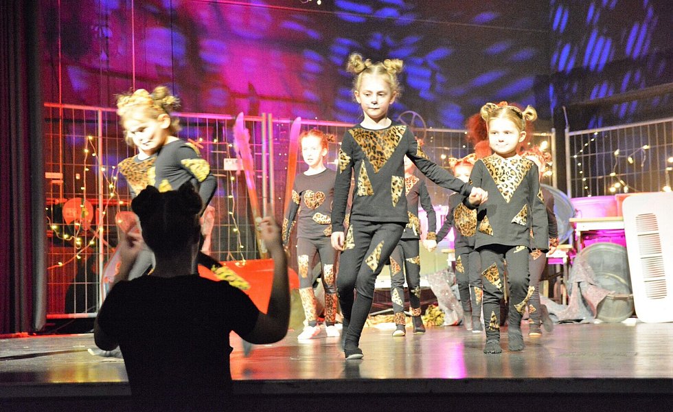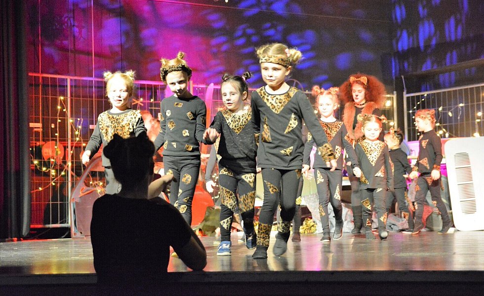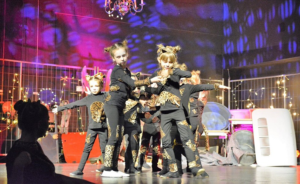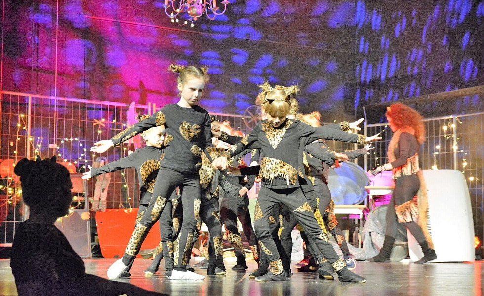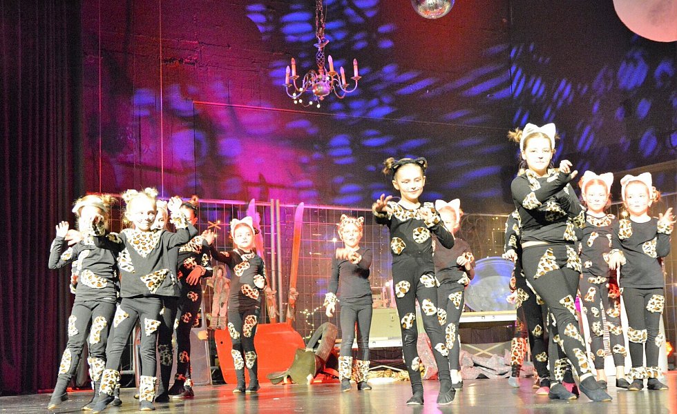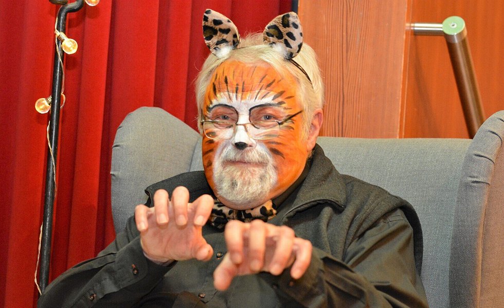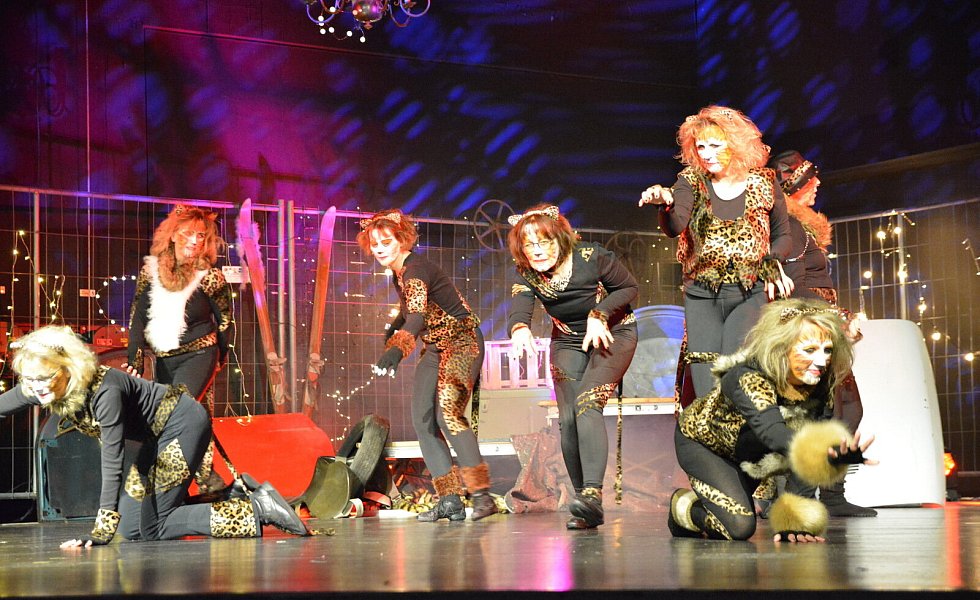 Aus dem „Cats for Kids“ von damals sind die „Dancing Cats“ geworden. Damit die Geschichte der tanzenden Katzen nicht nur tänzerisch, sondern auch mit den entsprechenden Überleitungen zu einer stimmigen Einheit wird, hatten die Vorsitzende der Jazztanzabteilung, Vicky Gagelmann, und ihre Mitstreiterinnen Pfarrer im Ruhestand Klaus Sommer als Geschichtenerzähler gewinnen können. Ehe er in seinem gemütlichen Sessel am Bühnenrand Platz nimmt, ist er als alter Kater geschminkt worden – und dennoch erkennen ihn die meisten der rund 500 Besucher.