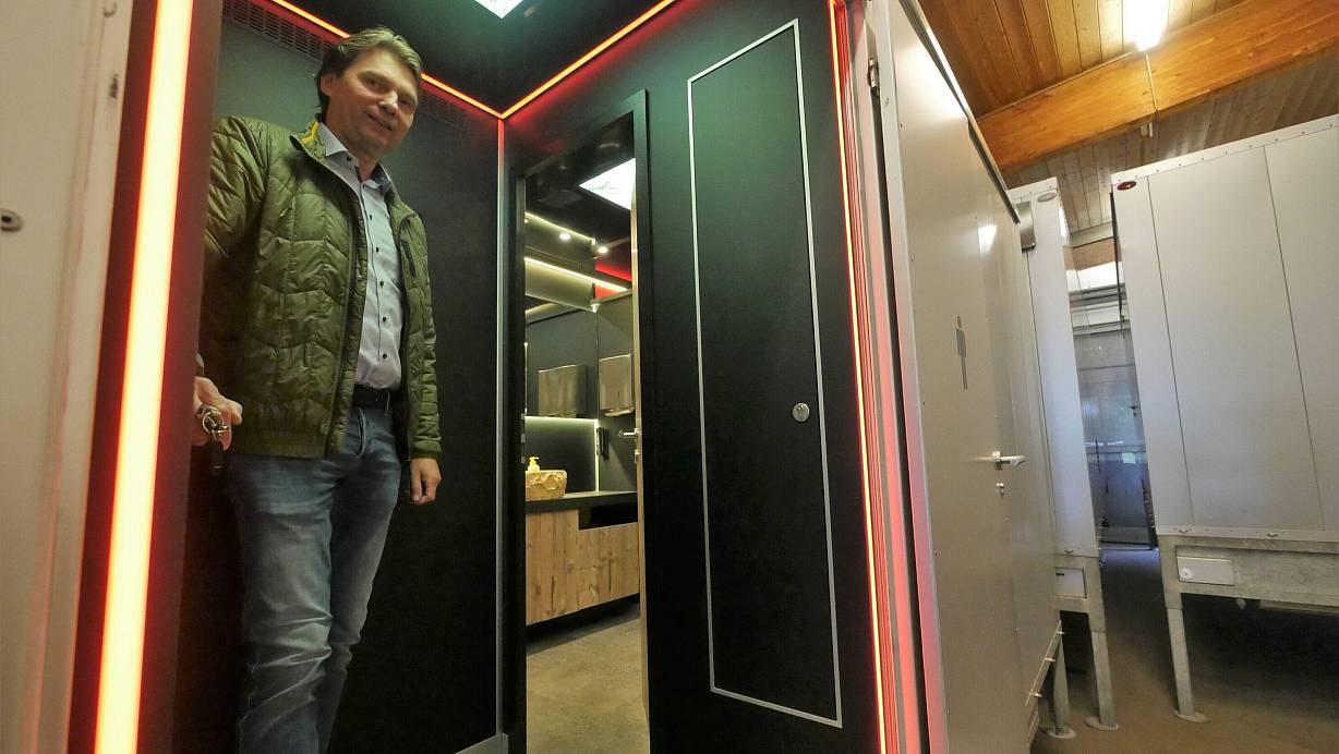 Zu Veranstaltungen in ganz Europa macht sich Jörg Stibbe aus Horn mit seinen Luxus-Toilettencontainern auf den Weg. Seine Kundschaft ist finanzstark, hat aber beim Stillen Örtchen hohe Ansprüche.