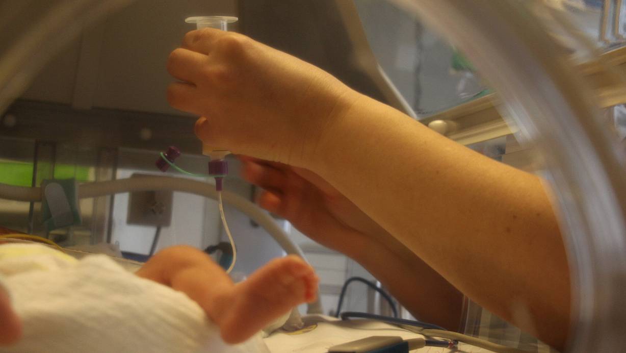 Marias Sohn wird auf der Neugeborenenintensivstation am Klinikum Lippe über eine Magensonde portionsweise mit Muttermilch gefüttert. Bald soll der vier Wochen alte Junge mit der oralen Ernährung loslegen. | © Janet König