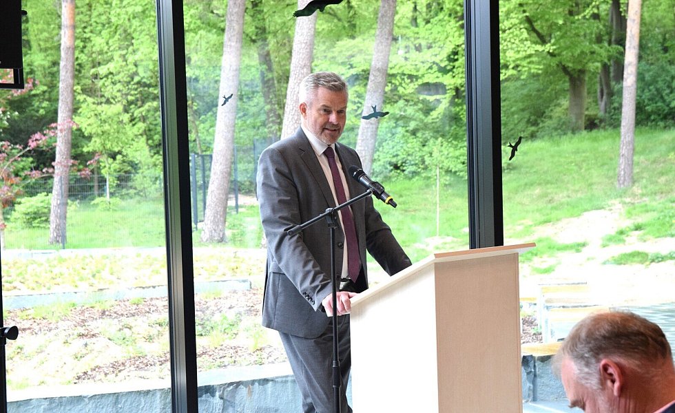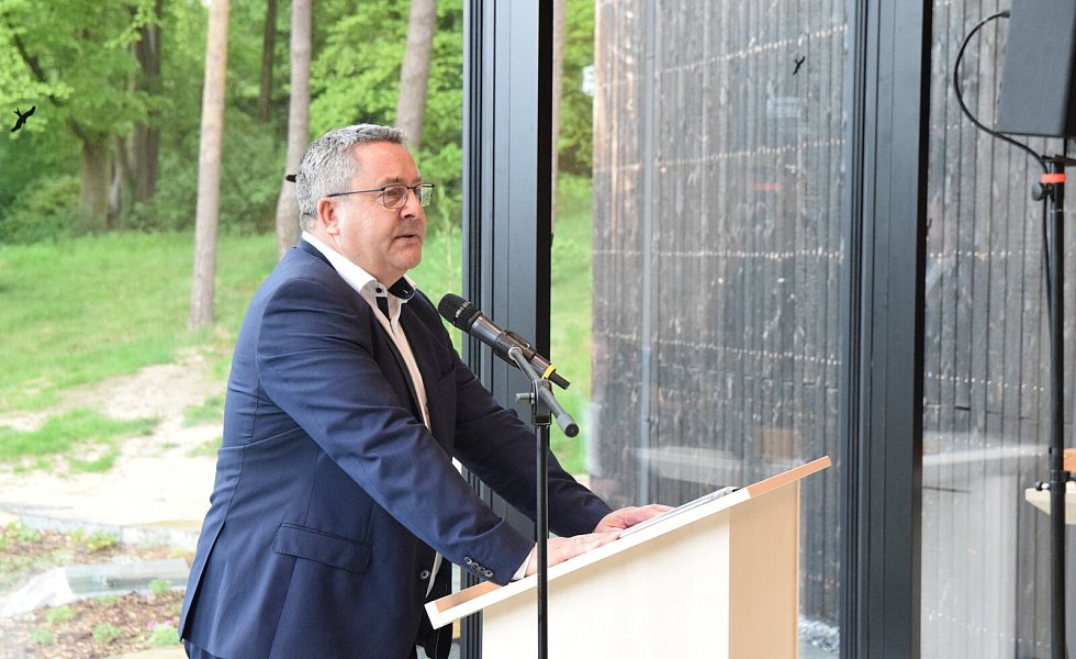 Oerlinghausen. Dirk Becker hat die Worte von Karl Banghard noch im Ohr. „Ich habe da eine Idee“, hatte der Leiter des Archäologischen Freilichtmuseums vor acht Jahren gesagt. Aus dem ursprünglich angedachten Klimaturm ist eine Klimaerlebniswelt geworden, die Landesministerin Mona Neubaur bei der Eröffnungsfeier als „Leuchtturm für Lippe“ bezeichnet hat. Für Bürgermeister Dirk Becker ist die Klimaerlebniswelt zudem ein besonderes Geschenk, denn sie ist exakt am Tag seines 58. Geburtstags ihrer Bestimmung übergeben worden.