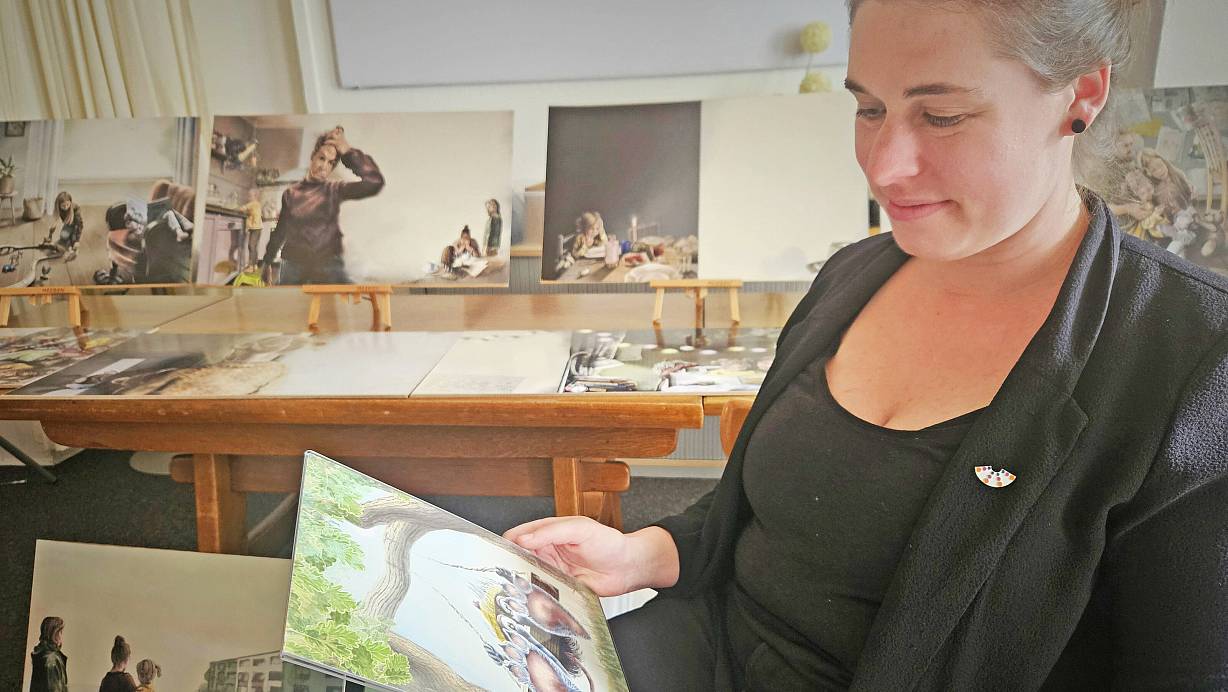 Francis Kaiser hat einige ihrer Zeichnungen für das Buch vergrößert mitgebracht. | © Janet König