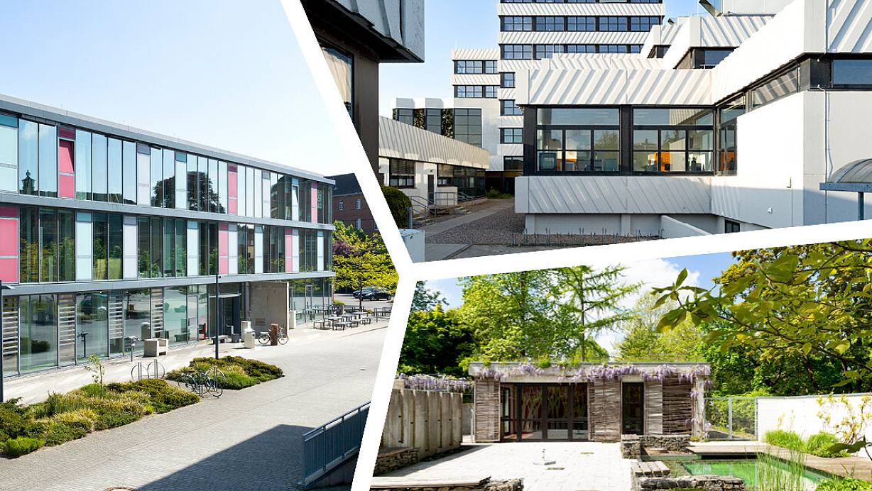 Künftig soll sich die Organisation der Fachbereiche an der Technischen Hochschule OWL nicht mehr an den jeweiligen Standorten Detmold (links), Lemgo (rechts oben) und Höxter (rechts unten) orientieren, sondern thematisch komplett neu geordnet werden. | © Montage: TH OWL
