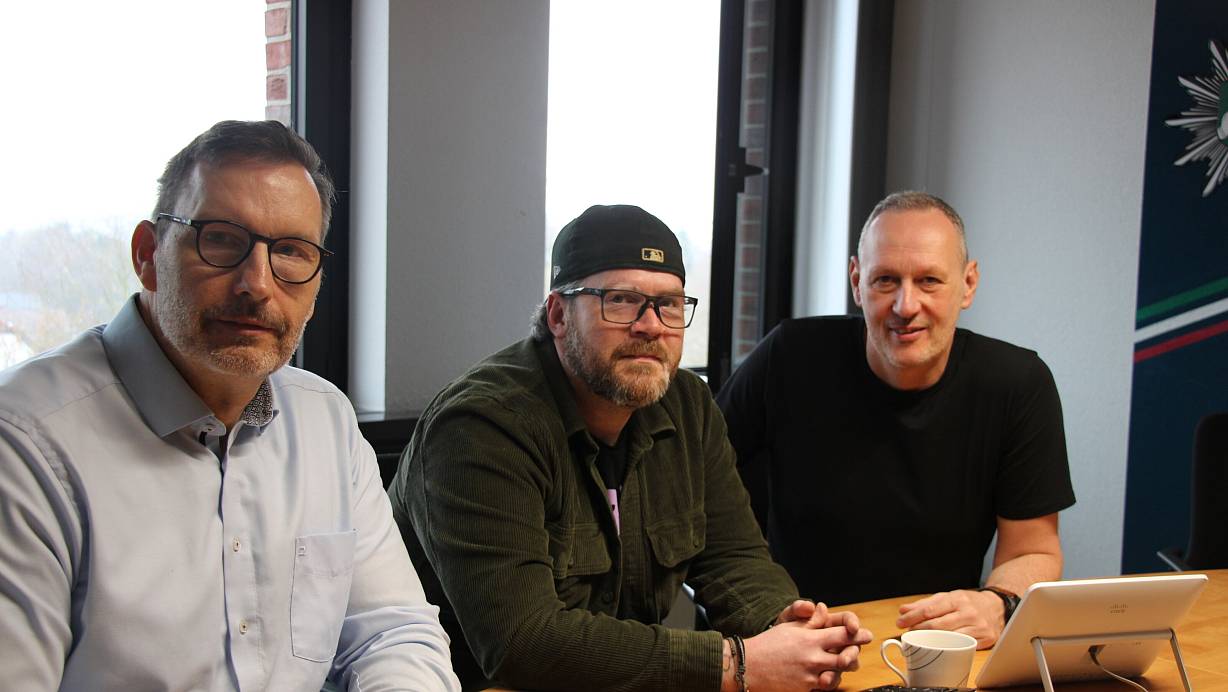 Regierungsbeschäftigter Arnd Begemann (von links), spezialisiert auf Cybercrime/Jugendkriminalität im Bereich Kriminalprävention und Opferschutz, Kriminalhauptkommissar Thomas Konrad, Leiter Kriminalprävention und Opferschutz der Polizei Lippe sowie Erster Polizeihauptkommissar Achim Tietz, Leiter des Kriminalkommissariats 1, beobachten, wie sich viele Taten vom Analogen ins Digitale verlagern. | © Janet König