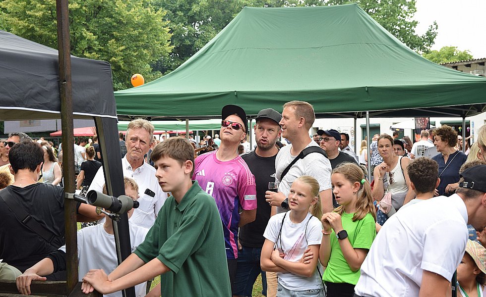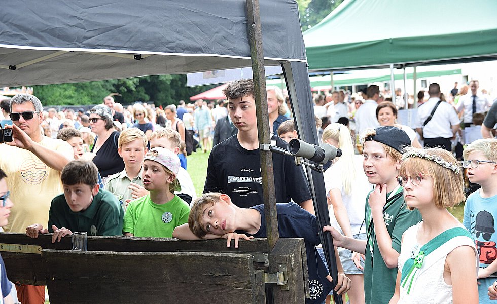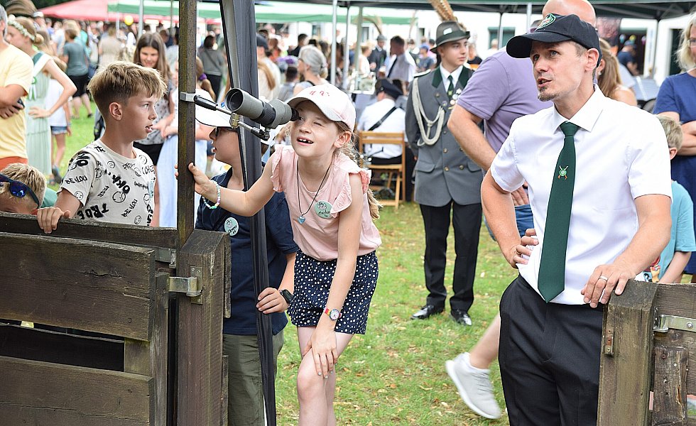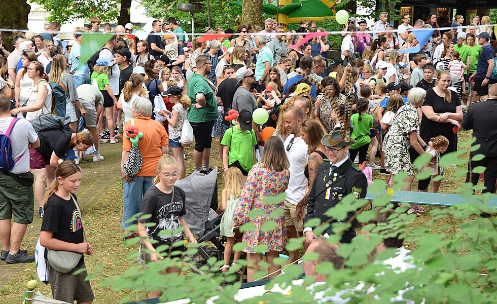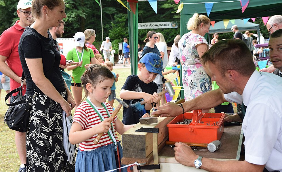Der Schützenplatz ist zu dieser Zeit bereits so voll wie nie zuvor. Mehr als 2.500 Besucher tummeln sich auf dem Areal, aber auch auf dem Nebengelände, wo ein Heißluftballon in die Höhe steigt und sich auf einer Blaulichtmeile Polizei, Feuerwehr, Rettungsdienst, THW und Bundeswehr präsentieren. Kinderkarten sind schnell vergriffen, weitere Karten müssen noch fix nachgeordert werden. Das Jubiläumsfest bleibt in vielerlei Hinsicht in Erinnerung.