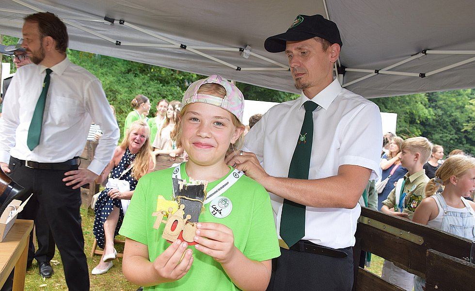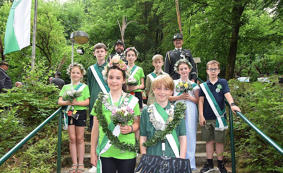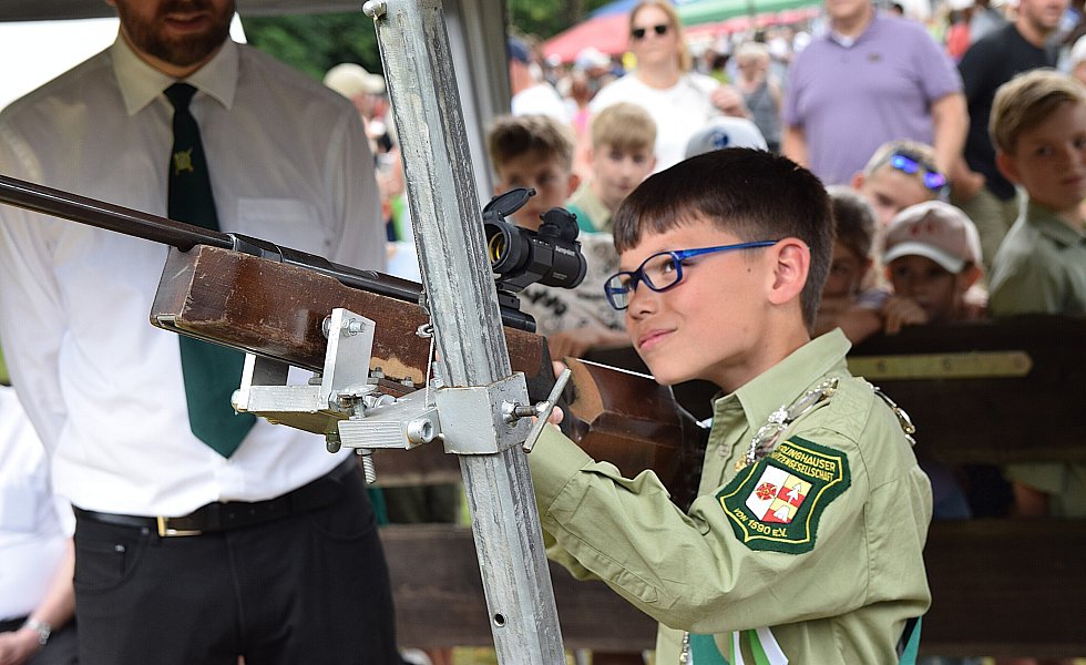 Die ganze Woche über habe der Sohn von nichts anderem gesprochen, als vom großen Wunsch Oerlinghauser Kinderkönig zu werden, berichtet Markus Landerbarthold, Geschäftsführer der Schützengesellschaft. Entsprechend sichert sich Jarne die Nummer eins beim Schießwettkampf. Womöglich ein gutes Omen. Kaum fassen kann der Fünftklässler des Niklas-Luhmann-Gymnasiums und Neffe von Onkel Oberst Christian Landerbarthold, dass der zu dieser Zeit bereits halbierte Vogel dann tatsächlich zu Boden purzelt.