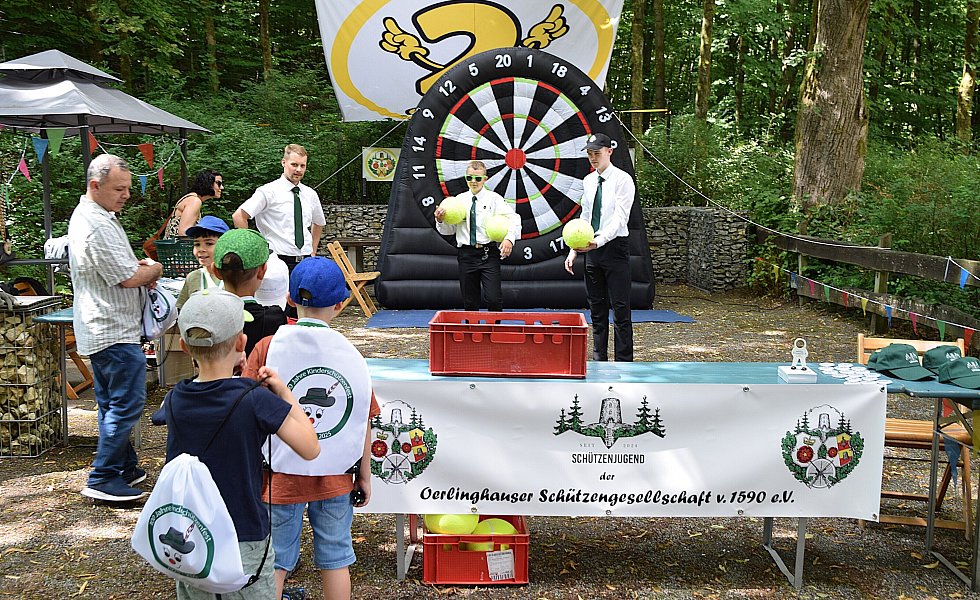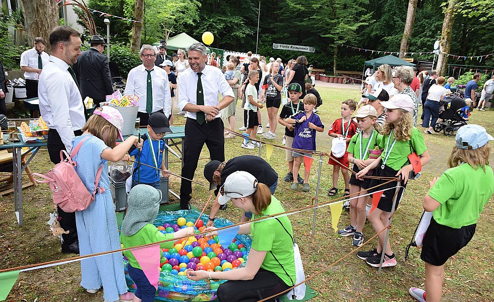 Das Unteroffizierskorps um Markus Höhne hat wieder etliche Spielstände und zum besonderen Anlass viele besondere Aktionen organisiert und eine große Tombola. Der bunte Festumzug durch die Stadt mit dem Kinderkönigspaar 2024, Nico Schmidt und Mia Michael, an der Spitze wird von den Cheerleadern des TSV Oerlinghausen, der Oerly-Musikschule und dem Spielmannszug der Freiwilligen Feuerwehr Bad Lippspringe begleitet. Besonderheit auf dem Platz: Alle teilnehmenden Kinder erhalten eine Jubiläumsmedaille und einen Kinderschützenfest-Beutel.