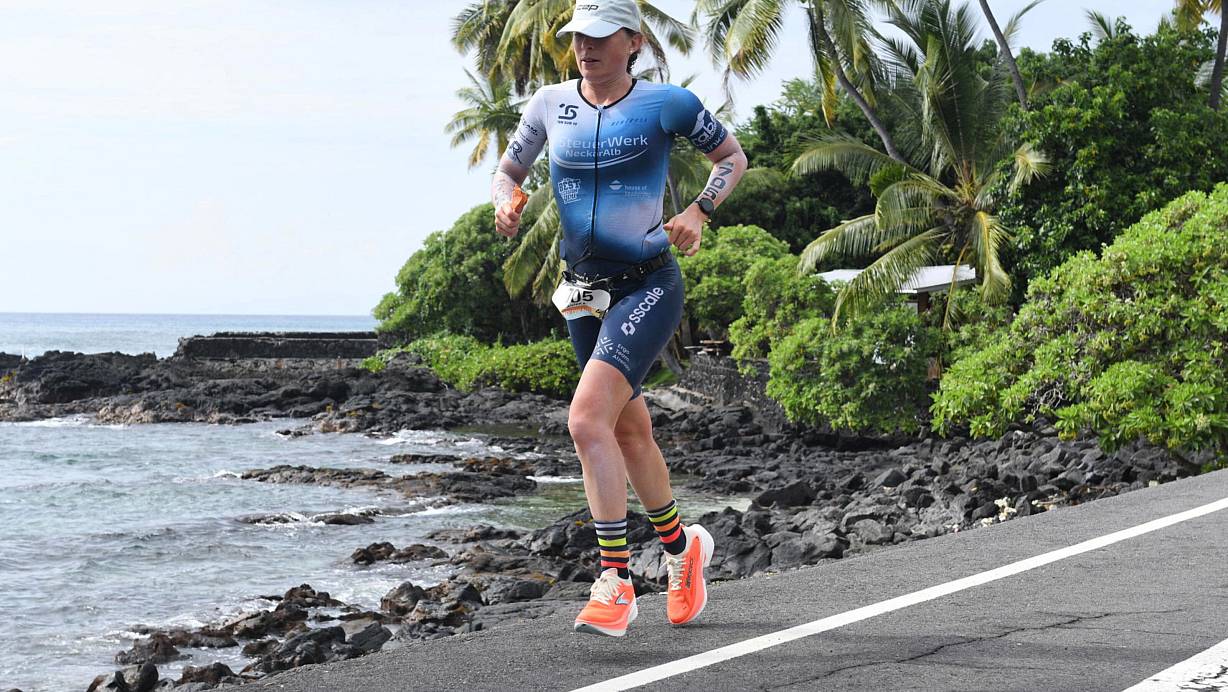 Sportlerin Annika Herrmann kämpft sich beim Ironman auf Hawaii über die Laufstrecke entlang der malerischen Küste. | © Fotorechte: Herrmann