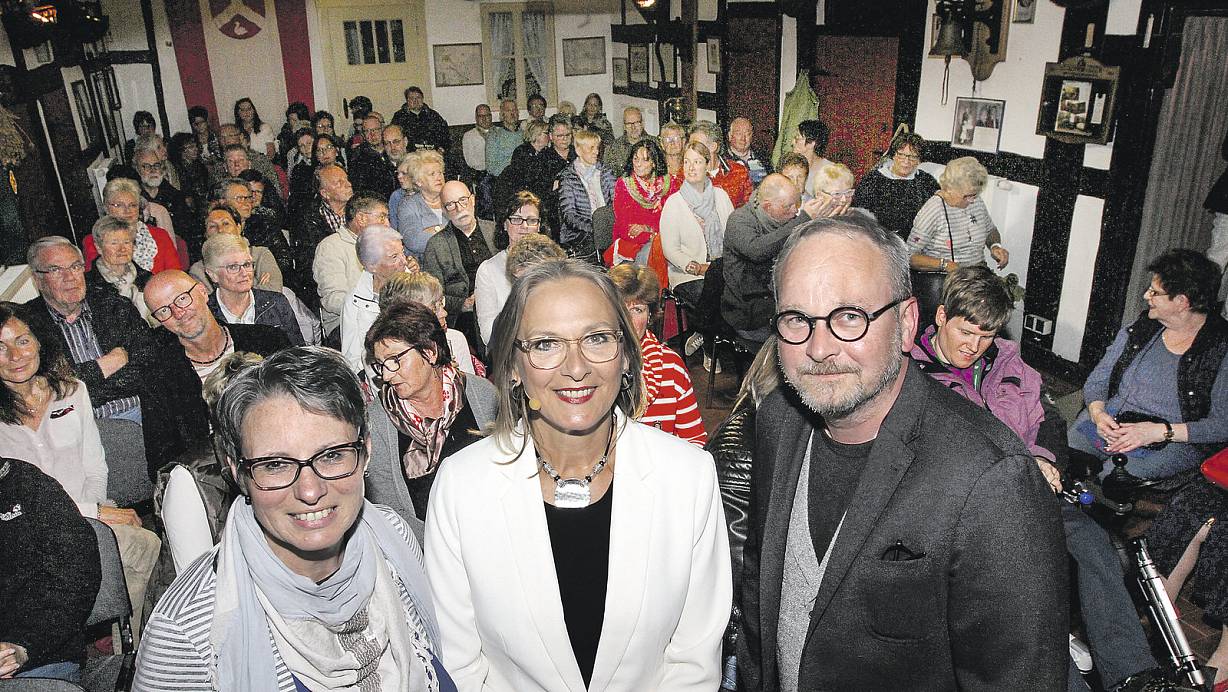 Volles Haus: Autorin Carla Berling wird von Eveline Taut und NW-Lokalchef Thorsten Gödecker eingerahmt. | © bb