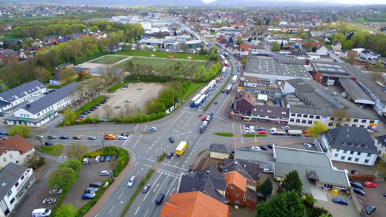 Die Mindener Straße soll ab der Kreuzung Eidinghausener Straße (links) bis zur Dehmer Straße künftig der Stadt gehören. Sie ist dann aber auch für den Umbau in diesem Abschnitt verantwortlich. | © Jens Reddeker