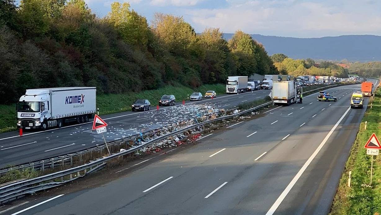 Ein Lastwagen ist auf der Autobahn zwischen Dortmund und Hannover gegen die Leitplanke gefahren, umgekippt und hat Flaschen verloren. Teile der Autobahn waren fast den ganzen Tag gesperrt.