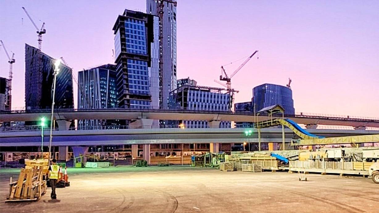 Vor dem Finanzcenter; Neben der Wildwasserbahn wurden unter anderem eine Eisbahn und Show-Zelte auf dem neuen Vergnügungspark aufgebaut. | © privat