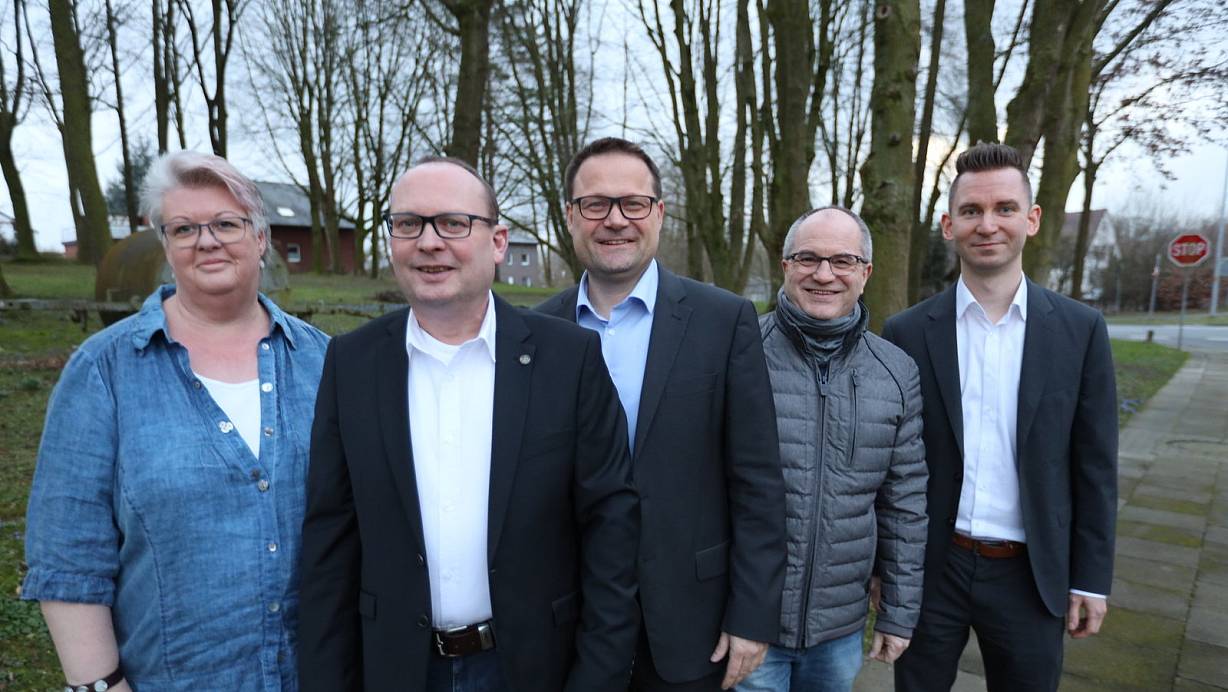 Susanne Rongen (v. l.), Oliver Thamm, Lars Bökenkröger, Stephan Haeder und Malte Kuhlmann sind die CDU-Ratskandidaten für Volmerdingsen, Wulferdingsen und Bergkirchen, sowie für das Bürgermeisteramt und den Kreistag. | © Nicole Sielermann