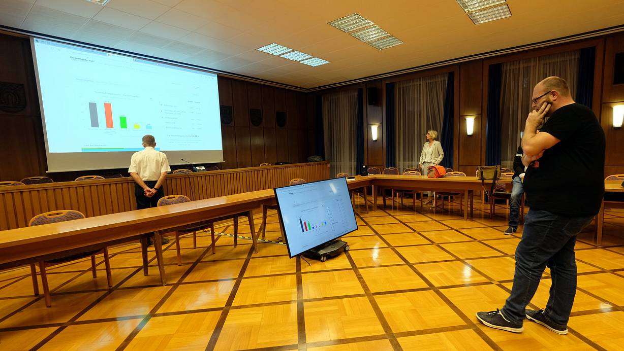 Wahlabend in Zeiten der Pandemie: So leer war es im Rathaus selten, wenn die Bad Oeynhausener wählen. |