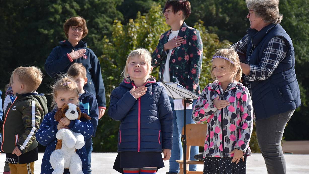 Die Kinder der Kita Sternschnuppe singen bei der Grundsteinlegung. | © Sara Mattana