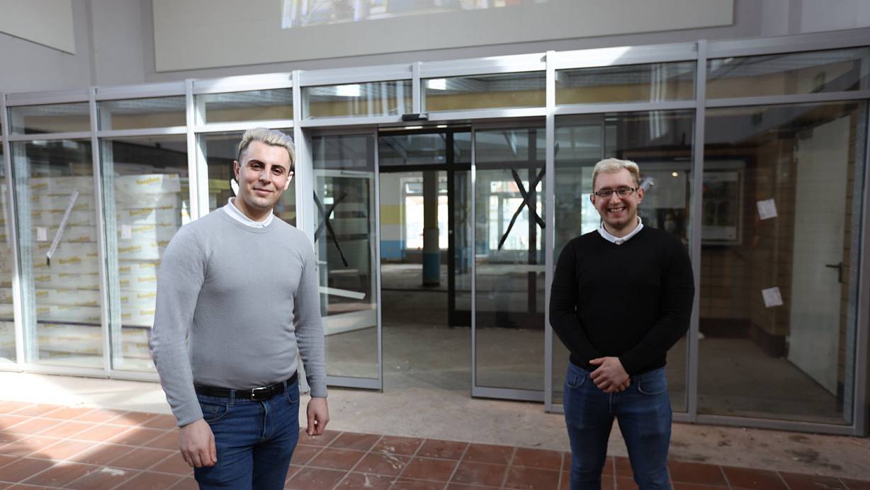Orhan Bro (l.) und Dimitrij Nikulicev vor ihrem neuen Bioladen im Bahnhof - im August soll Eröffnung sein. | © Nicole Sielermann