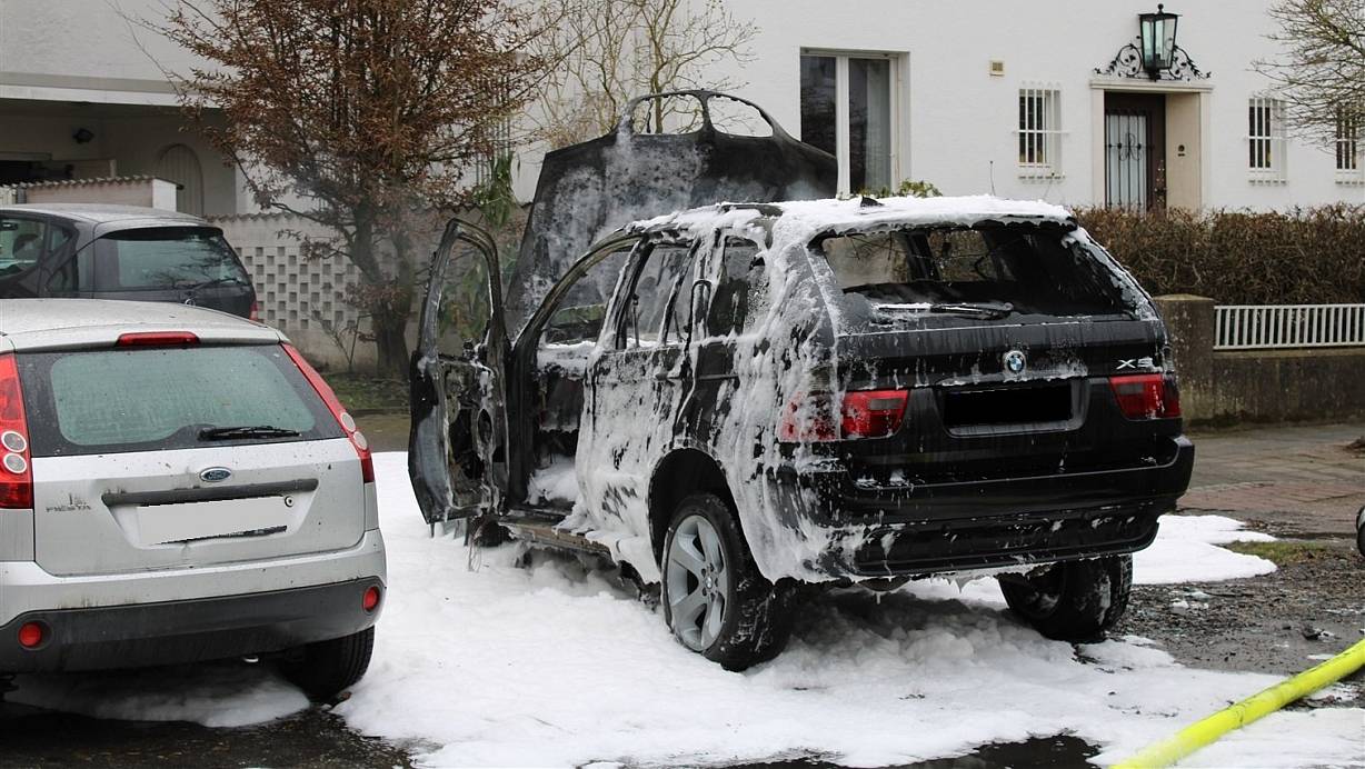 Eine vorbeifahrende Autofahrerin hatte gegen 14 Uhr die Flammen an dem vor einem Haus an der Bismarckstraße/Ecke Ravensberger Straße stehenden schwarzen BMW X5 bemerkt und die Rettungskräfte verständigt. Durch die enorme Hitze wurde zudem ein daneben abgestellter Ford Fiesta erheblich in Mitleidenschaft gezogen.