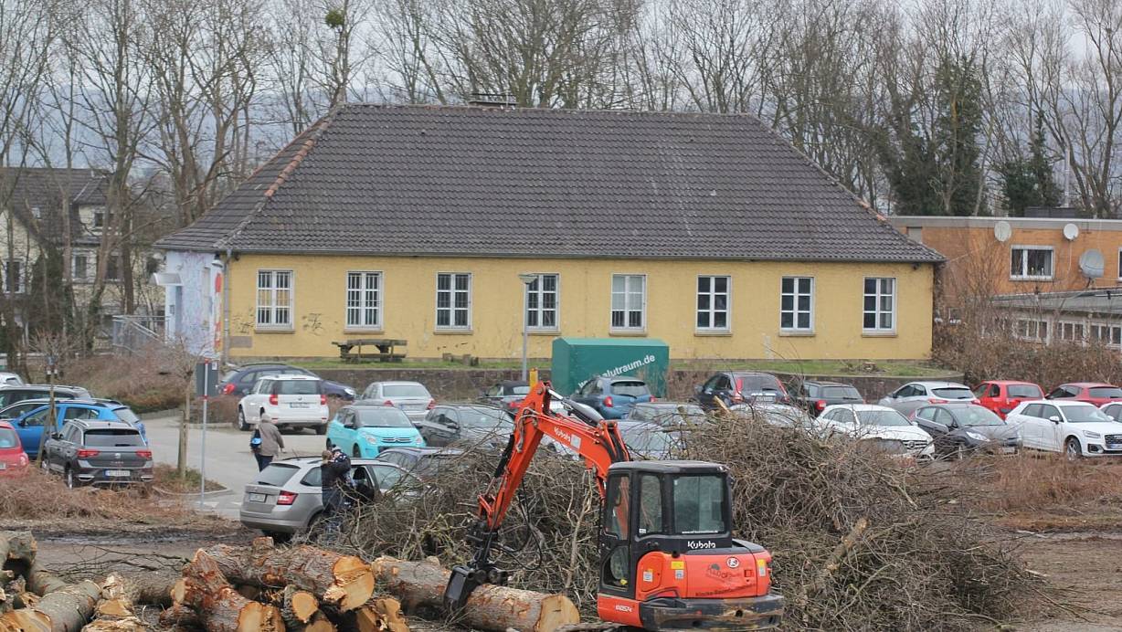 Mehrere Bäume wurden im Februar am Haus der Jugend und auf dem Hockeyplatz gefällt. Der Abriss des Jugendheims verschiebt sich nun aber. | © Ulf Hanke