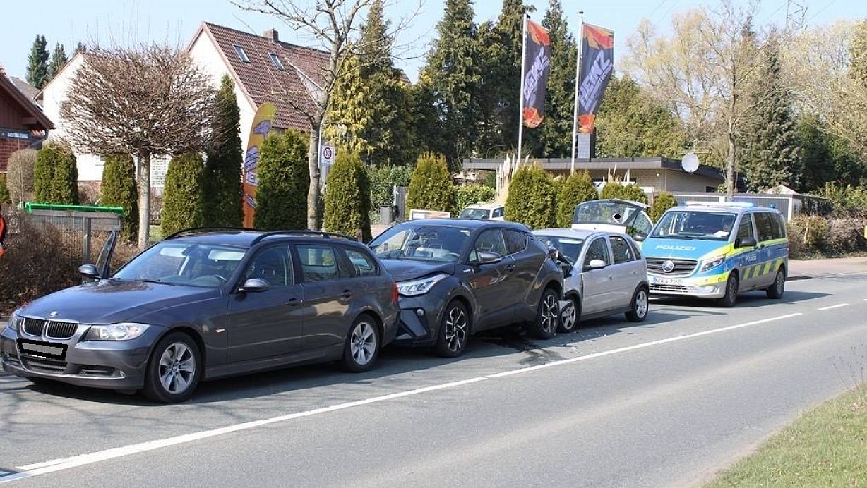 Bad Oeynhausen. Innerhalb von zweieinhalb Stunden kam es auf der Dehmer Straße zu gleich zwei Auffahrunfällen. Die Polizei wurde gegen 13.35 Uhr zu einem Unfall Höhe der Hahnenkampstraße gerufen. Hier waren gleich drei Autos beteiligt. Alle drei Autofahrerinnen waren nach Bad Oeynhausen unterwegs. Die 53-jährige Frau aus Hille musste an einer Fußgängerampel halten. Als die dahinter fahrende 62-jährige Frau aus Bad Oeynhausen auch bremste, knallte eine 77-jährige Bad Oeynhauserin mit ihrem Opel Corsa auf die vorderen Autos auf und schob alle zusammen.
