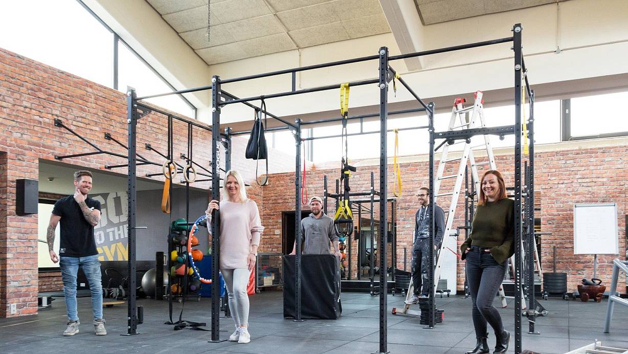 Freuen sich über den neugestalteten Fitnessbereich: Teamleiterin Bettina Lücking (zweite v.l.) mit den Trainern Steffen Neuhaus (v.l.), Maurice Berner, Rami Awad und Mirjam Dyck. | © Heidi Froreich