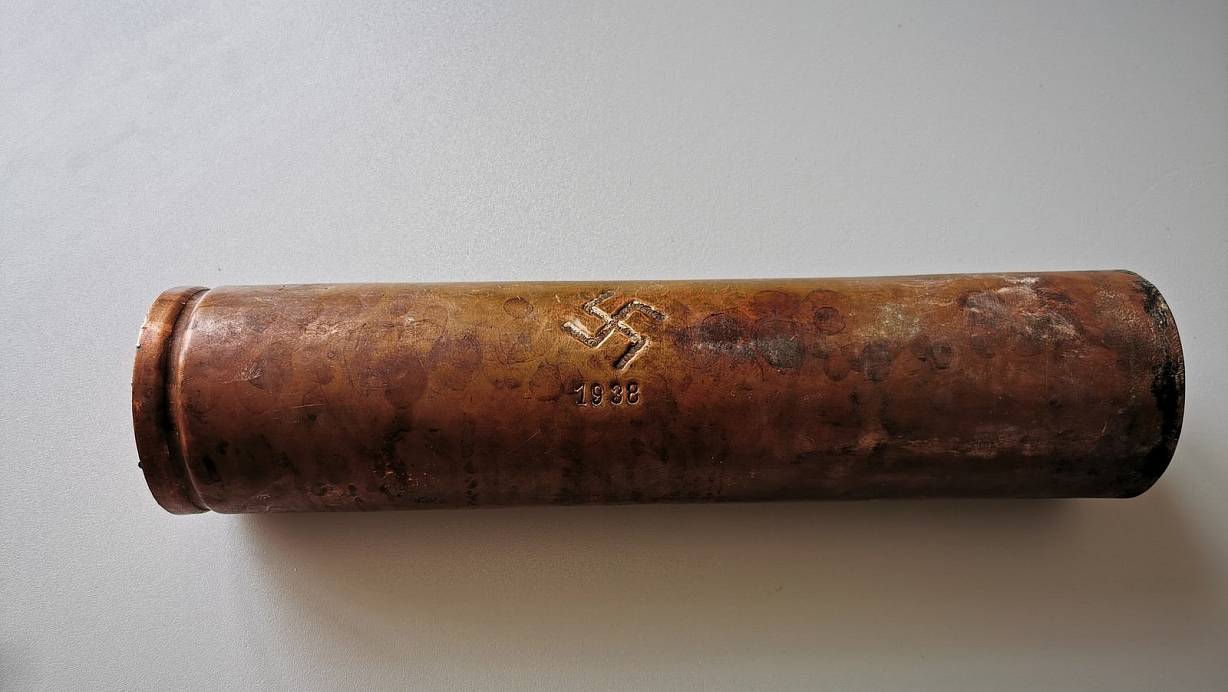 Diese Zeitkapsel haben Abrissarbeiter im Grundstein des ehemaligen Hitlerjugendheims in Bad Oeynhausen gefunden. | © Volker Müller-Ulrich / Stadt Bad Oeynhausen