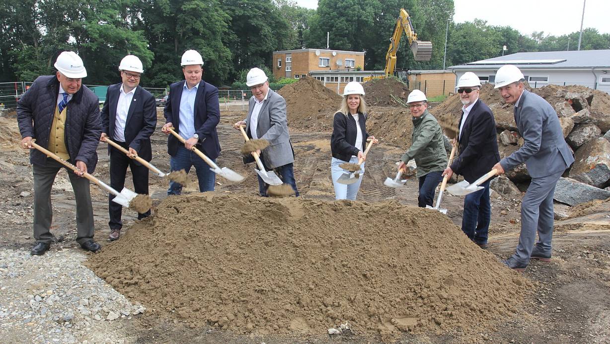 Spatenstich fürs Medical-City-Plaza-Parkhaus: Investor Karl-Heinz Ueckermann (v. l.), Bürgermeister Lars Bökenkröger, Investor Marco Fennel, Achim Fratzke (Medical City Plaza), Britta Kwast (Goldbeck), Thomas Lüer (Stadt), Detlef Strehl (Goldbeck) und Patrick Zahn (Stadt). | © Ulf Hanke
