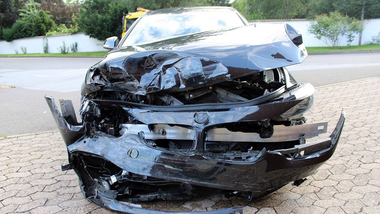 In Folge eines Unfalls wurde der BMW des Flüchtenden erheblich beschädigt. | © Polizei Minden-Lübbecke