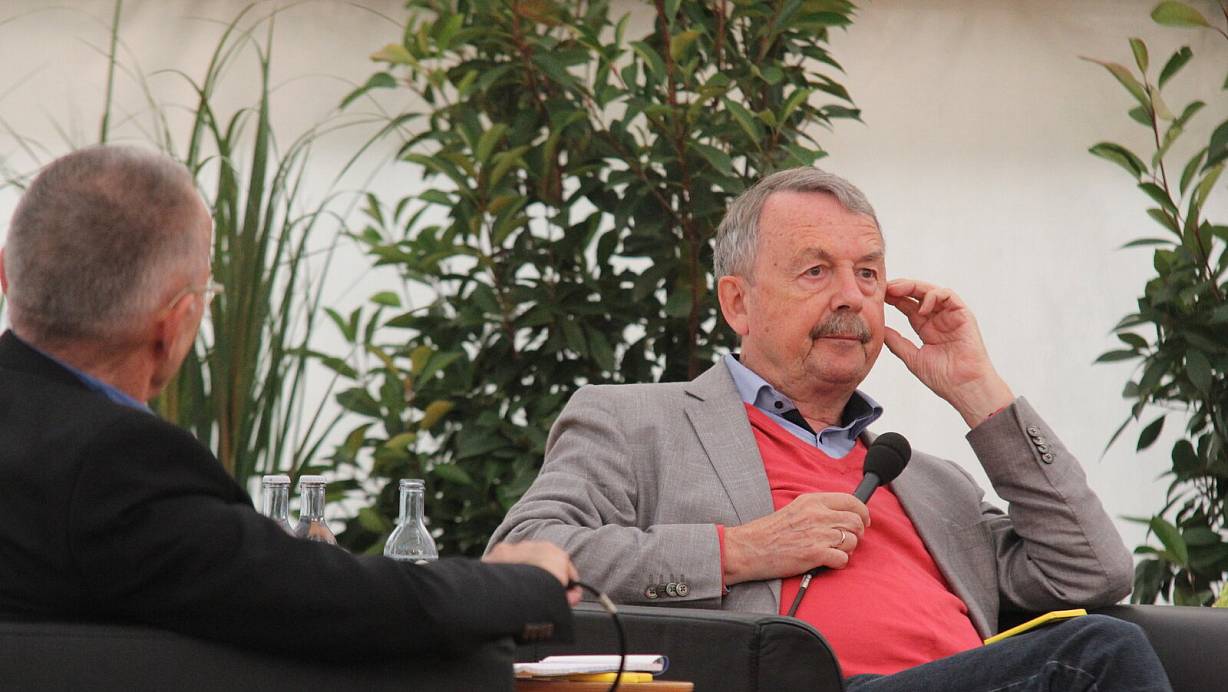 Wolfgang Streeck erklärt die Zauberformel des Kapitalismus auf dem Literaturfest "Poetische Quellen". | © Ulf Hanke