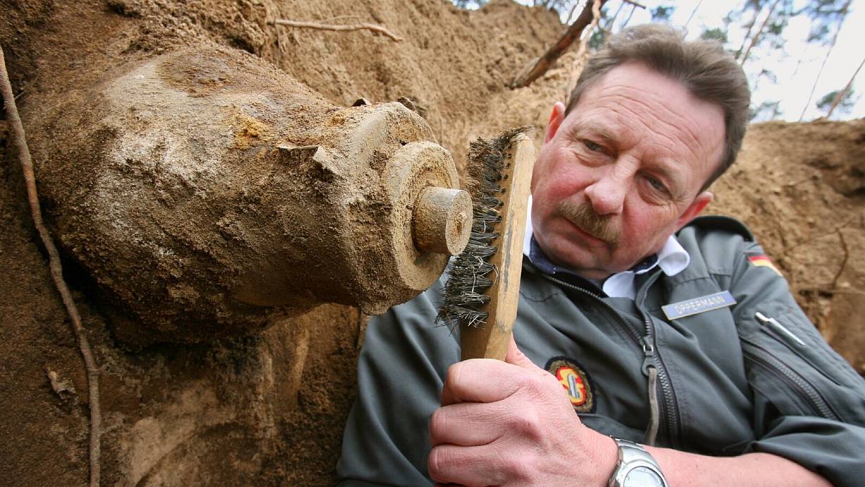 Auf unserem Symbolfoto säubert Dieter Oppermann mit einer drahtbürste den Zünder einer Fliegerbombe aus dem Zweiten Weltkrieg. Der Feuerwerker ist hauptamtlich beim Kampfmittelräumdienst im Einsatz. | © Boris Roessler