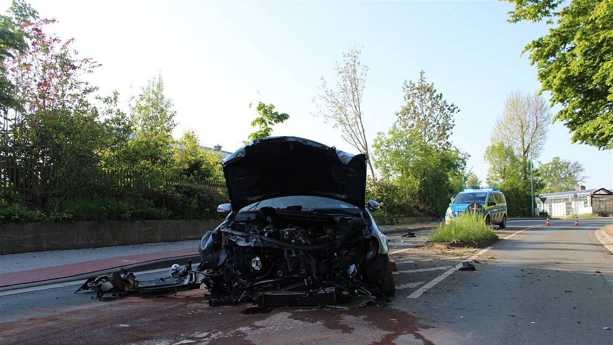 Der flüchtende Fahrer verlor die Kontrolle über sein Auto und kollidierte mit einer Grundstückseinfriedung. | © Polizei Minden-Lübbecke