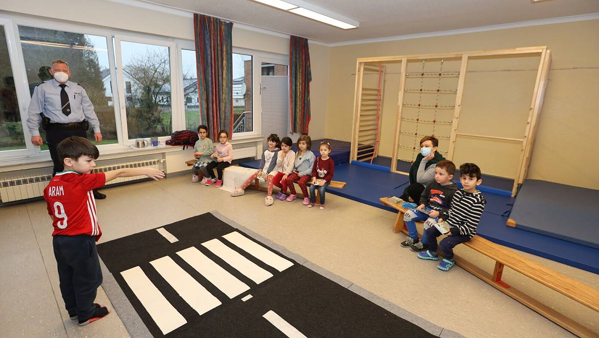 Michael Harting übt mit den Schulkindern des Kindergartens Zwergenhaus das Verhalten auf der Straße. | © Nicole Sielermann