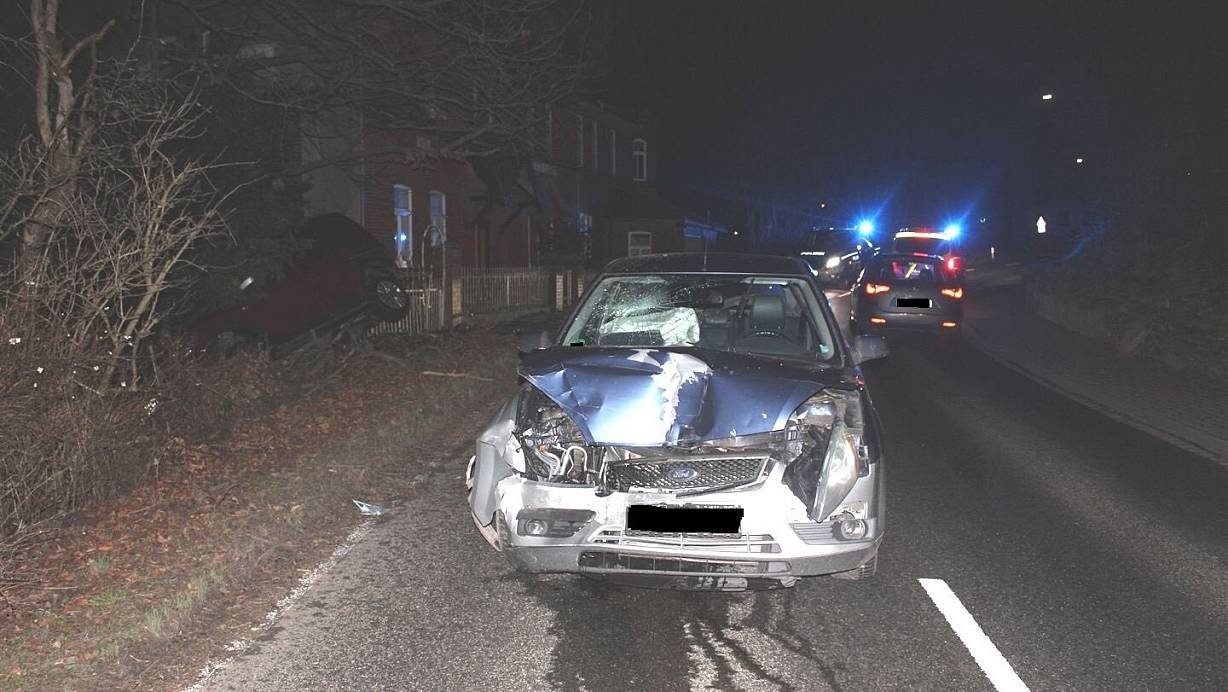 Der Ford-Fahrer verlor ausgangs einer Kurve die Kontrolle über seinen Wagen und prallte gegen einen geparkten Volkswagen. | © Polizei Minden-Lübbecke