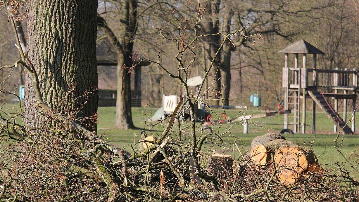 Diese Bäume im Sielpark hat der Sturm gefällt. Mitarbeiter der Stadtwerke Bad Oeynhausen haben das Holz aus dem Weg geräumt und zerkleinert. | © Ulf Hanke